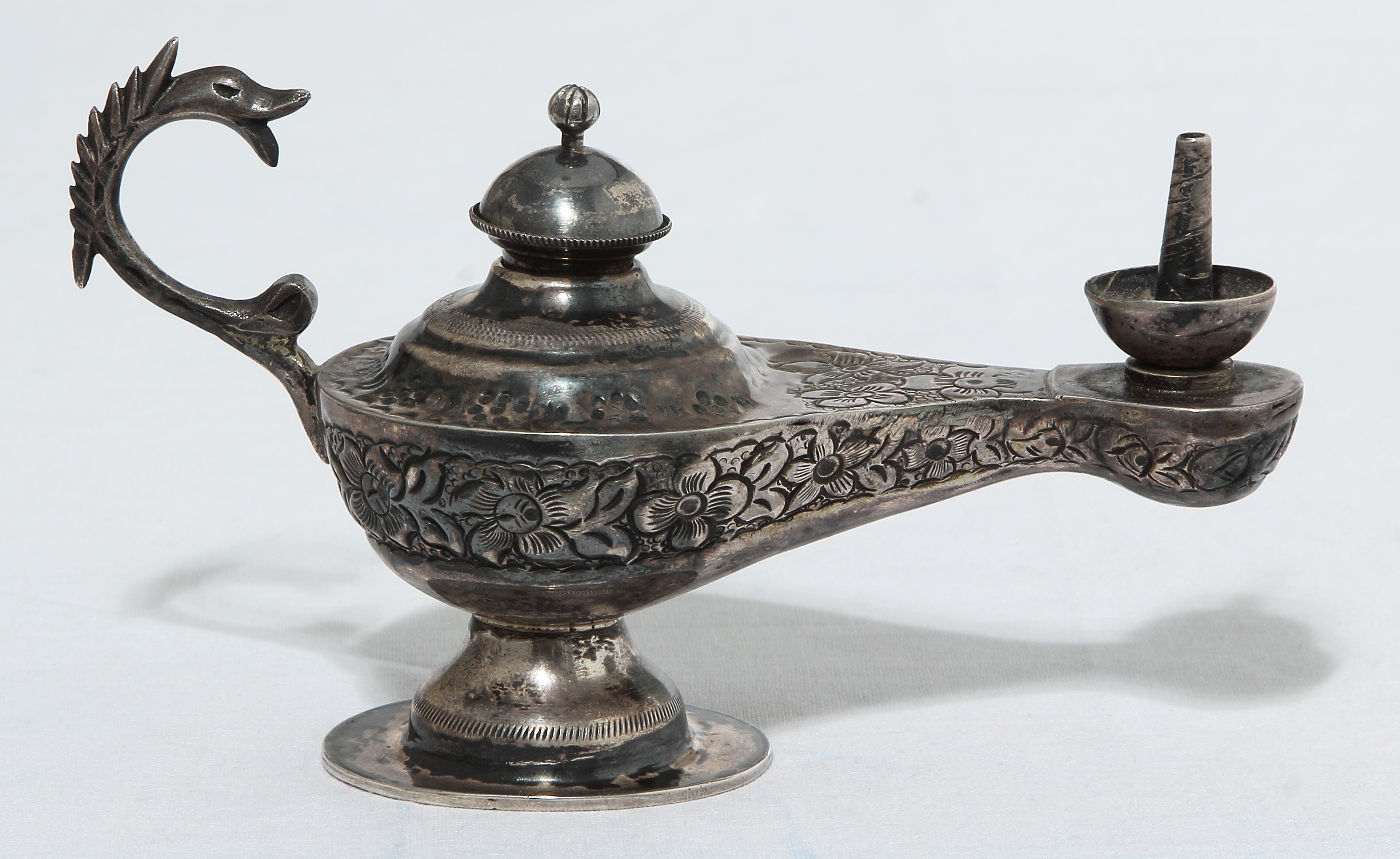 В данном лоте предлагается масляная лампа, выполненная из серебра.