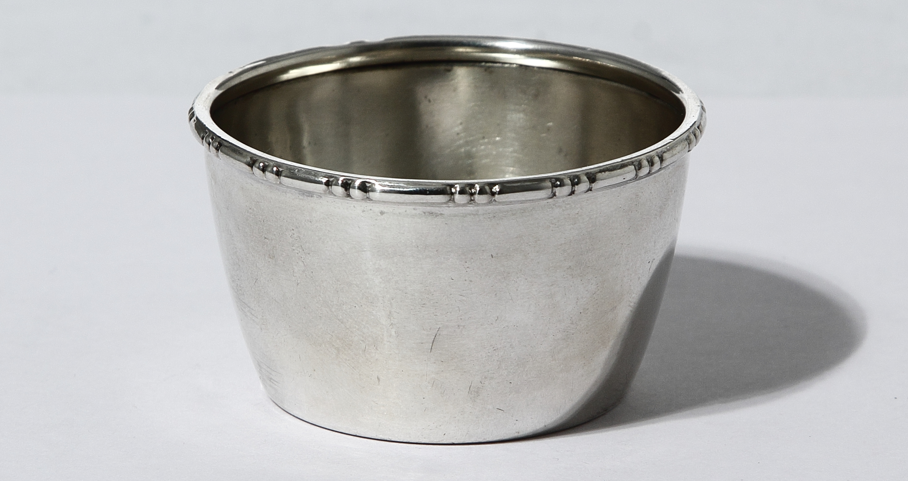 Клеймо мастерской.Датское пробирное клеймо 1916 года для серебряных изделий с изображением трех башен,под которыми размещены две последние цифры года клеймения. С 1608 по 1893 год такое клеймоставилось только на изделиях, произведенных в Копенгагене. С 1893 года это клеймо стало датскимобщенациональным клеймом, гарантирующим содержание серебра в клейменом изделии не ниже826/1000 (826 пробы), и использовалось до 1977 года.ядом с «Тремя башнями» располагается клеймо в виде инициалов начальника пробирной палаты(Stadtsguardien) времени клеймения. На данном изделии это «HCF» Christian F. Heise, руководительпробирной палаты Дании с 1904 по 1932 год.