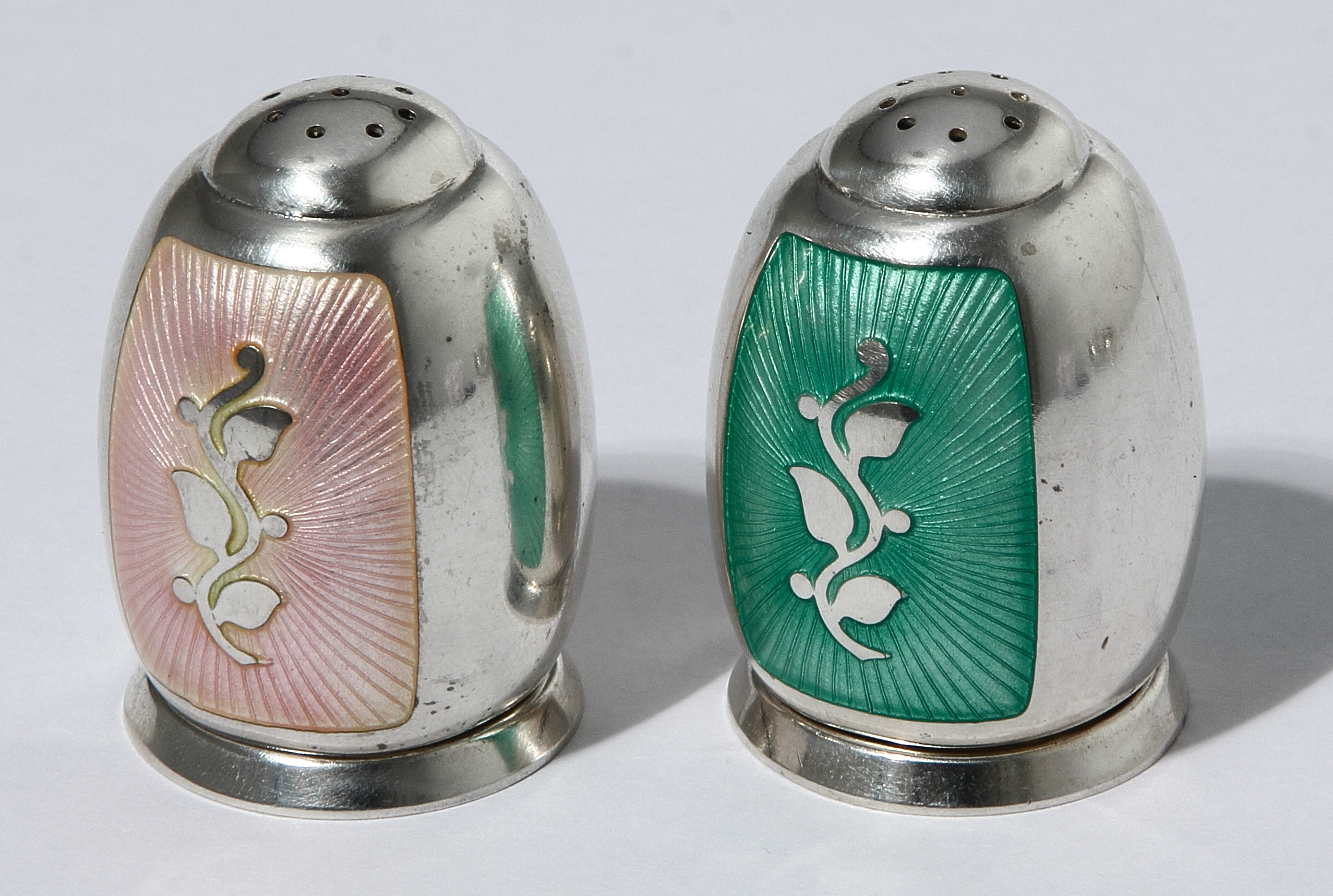 Солонка и перечница Серебро, гильошированная эмаль