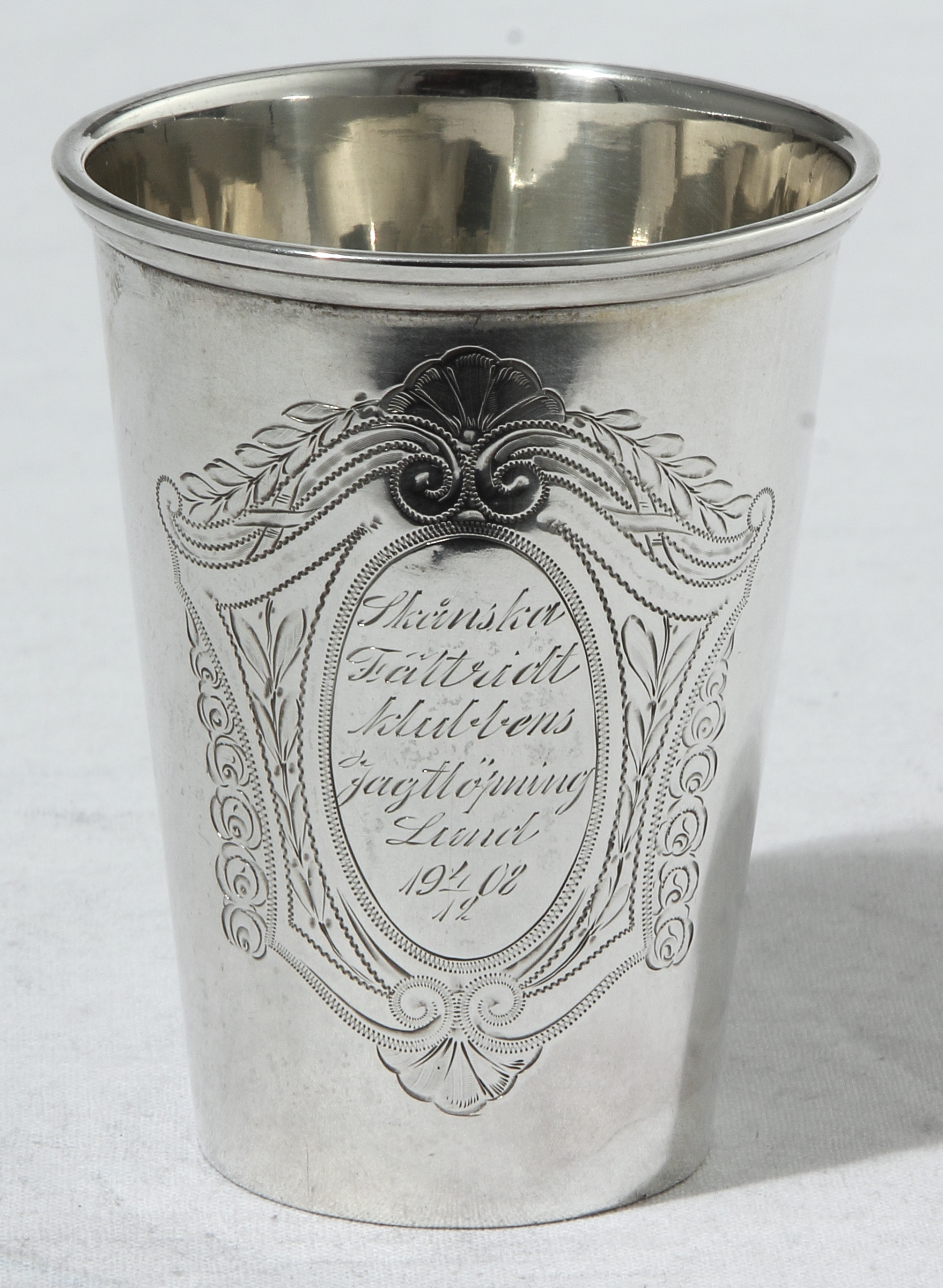 Клеймо мастерской.Пробирные клейма Швеции:«Три короны» на рифленом фоне в щитке, форма которого представляет собой символ трилистника,удостоверяет, что изделие выполнено в Швеции из драгметалла, проба которого не ниже минимальногостандарта, принятого в стране.«F7» - клеймо, удостоверяющее, что изделие было апробировано в 1908 году.