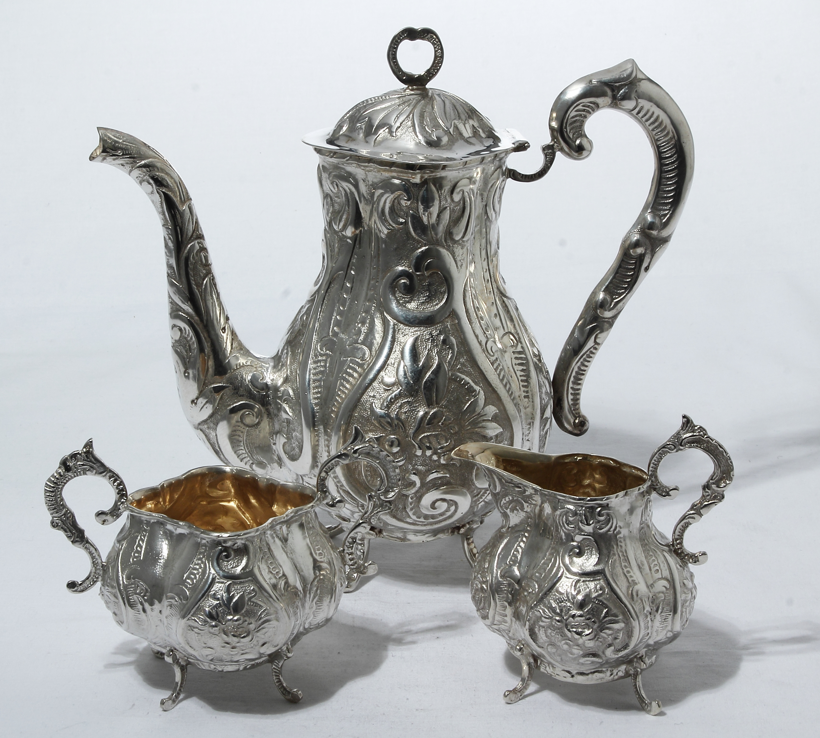 В данном лоте предлагается серебряный кофейный сервиз из трех предметов: