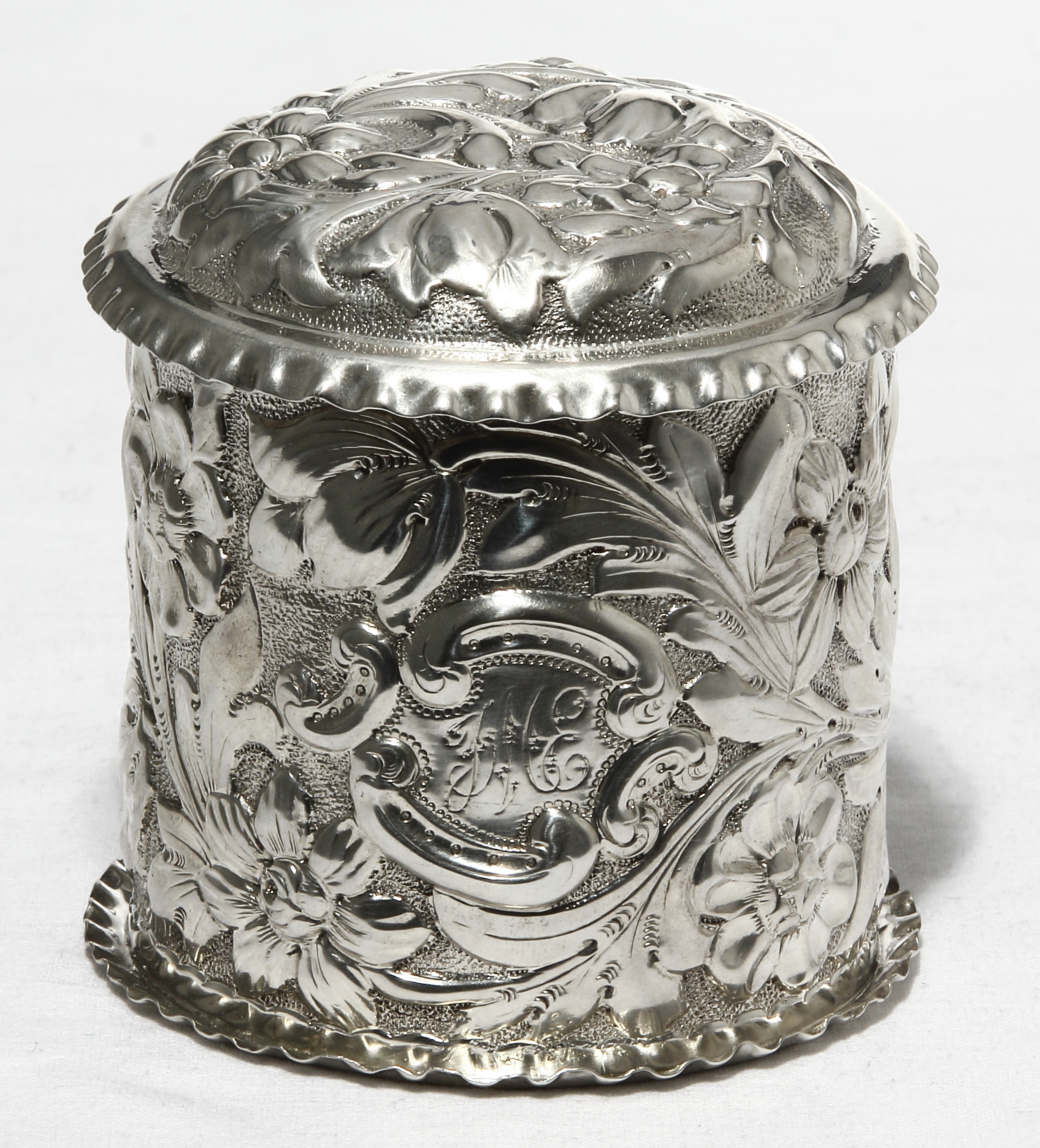 Поверхность изделия декорирована крупным рельефным узором из резных листьев и цветов.