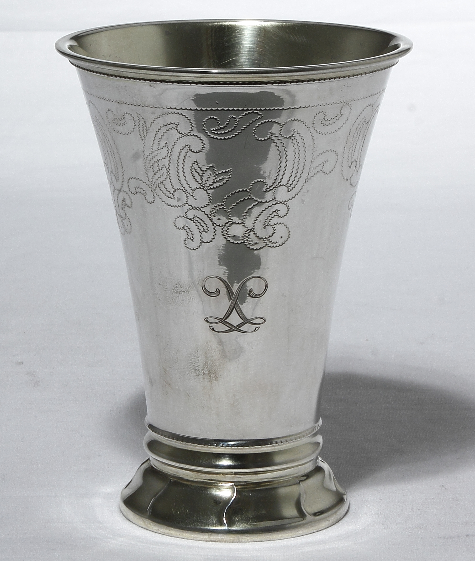 В данном лоте предлагается большой серебряный стакан или вазочка.