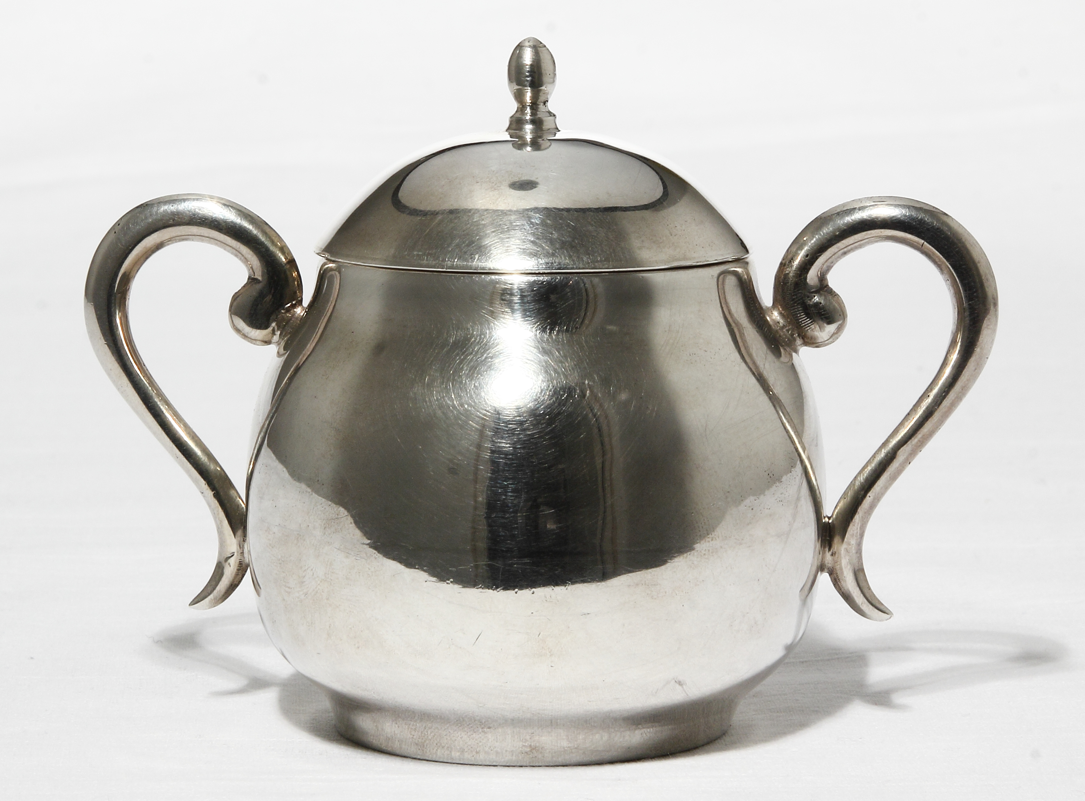 В данном лоте предлагается серебряная сахарница с крышкой.