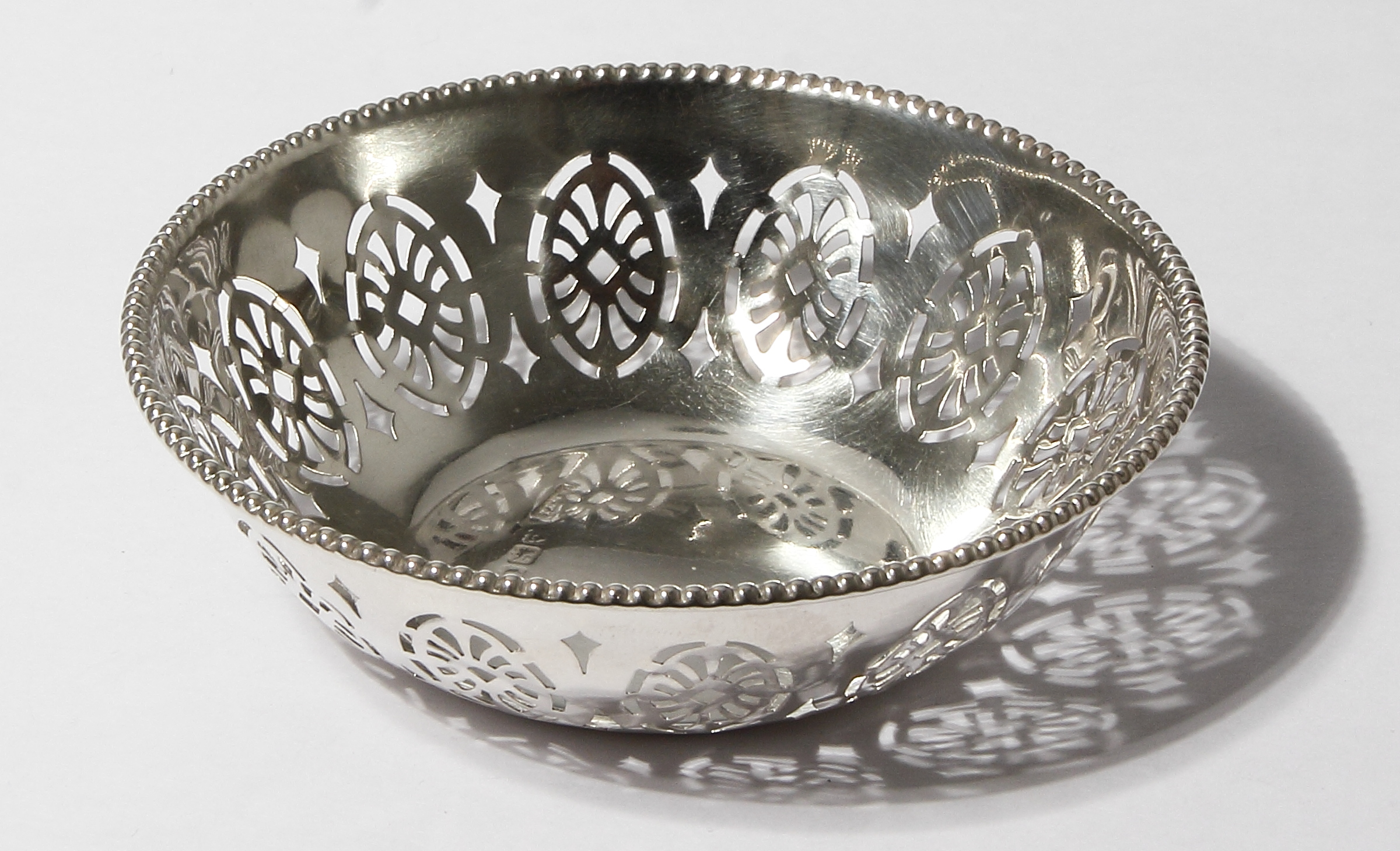 Пробирные клейма Англии: "Идущий лев" подтверждает, что изделие произведено в Англии из серебра 925 пробы. "Якорь" - клеймо пробирной палаты города Бирмингем. Буква "t" сообщает о том, что изделие было апробировано в 1918 году.  Кликнув по ниже указанным картинкам, Вы сможете рассмотреть лот на более качественных фотографиях, чем это позволяет сделать "Молоток":