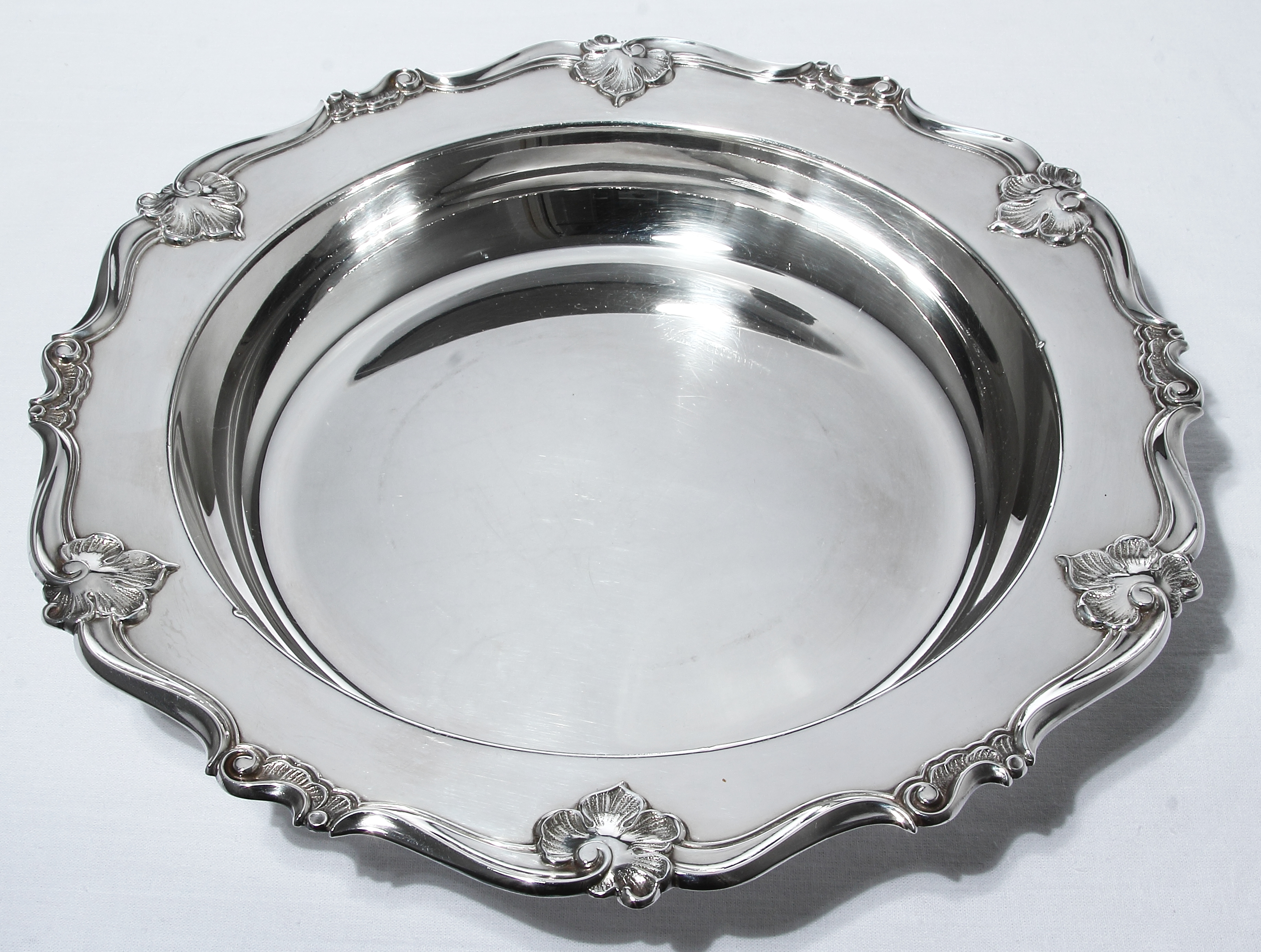 В данном лоте предлагается массивная серебряная тарелка или блюдо, выполненное в стиле рококо.