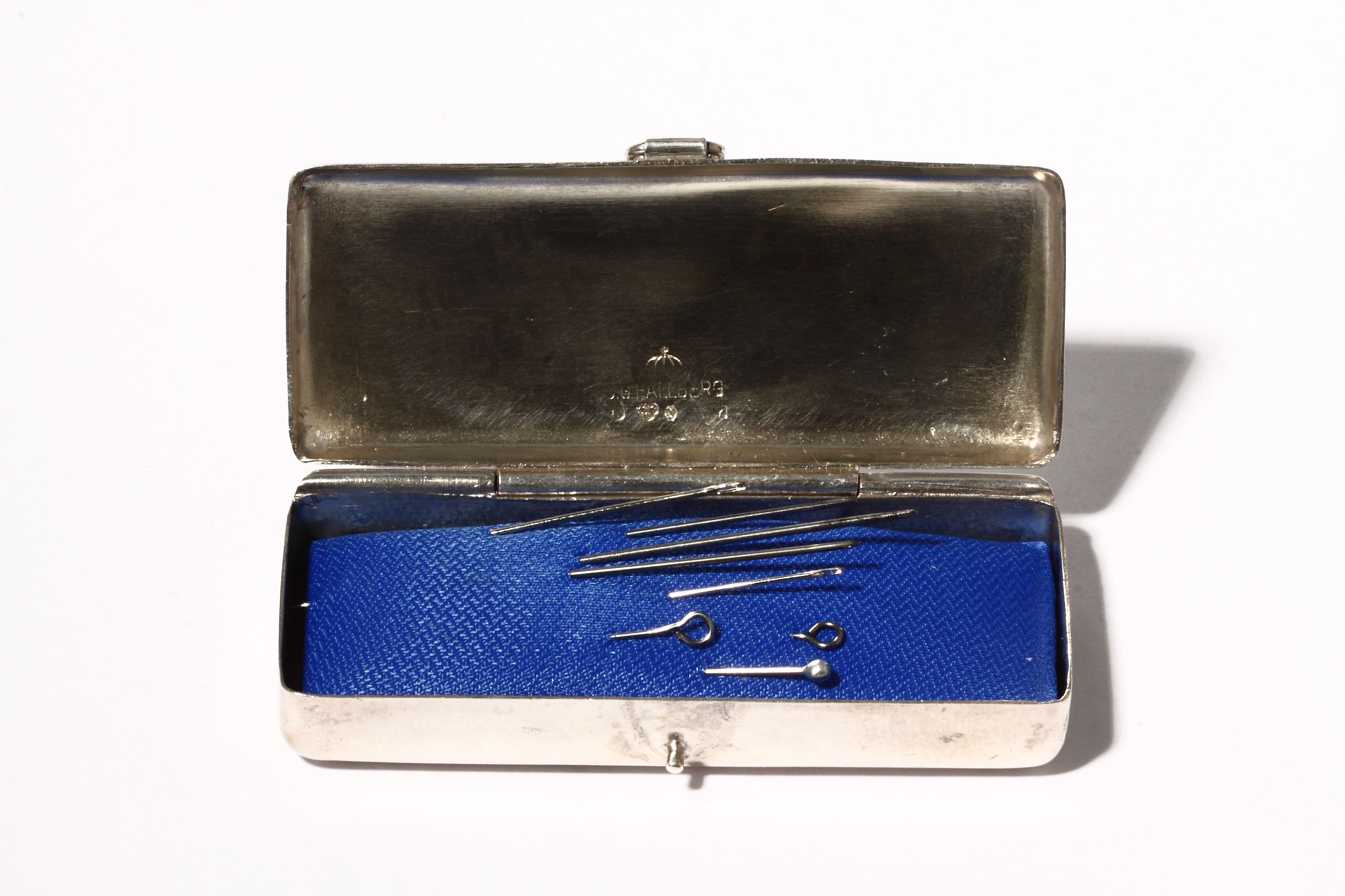 Длина - 6,5см, ширина - 2,7, высота - 1,1см. Вес - 36 граммов серебра 830 пробы.