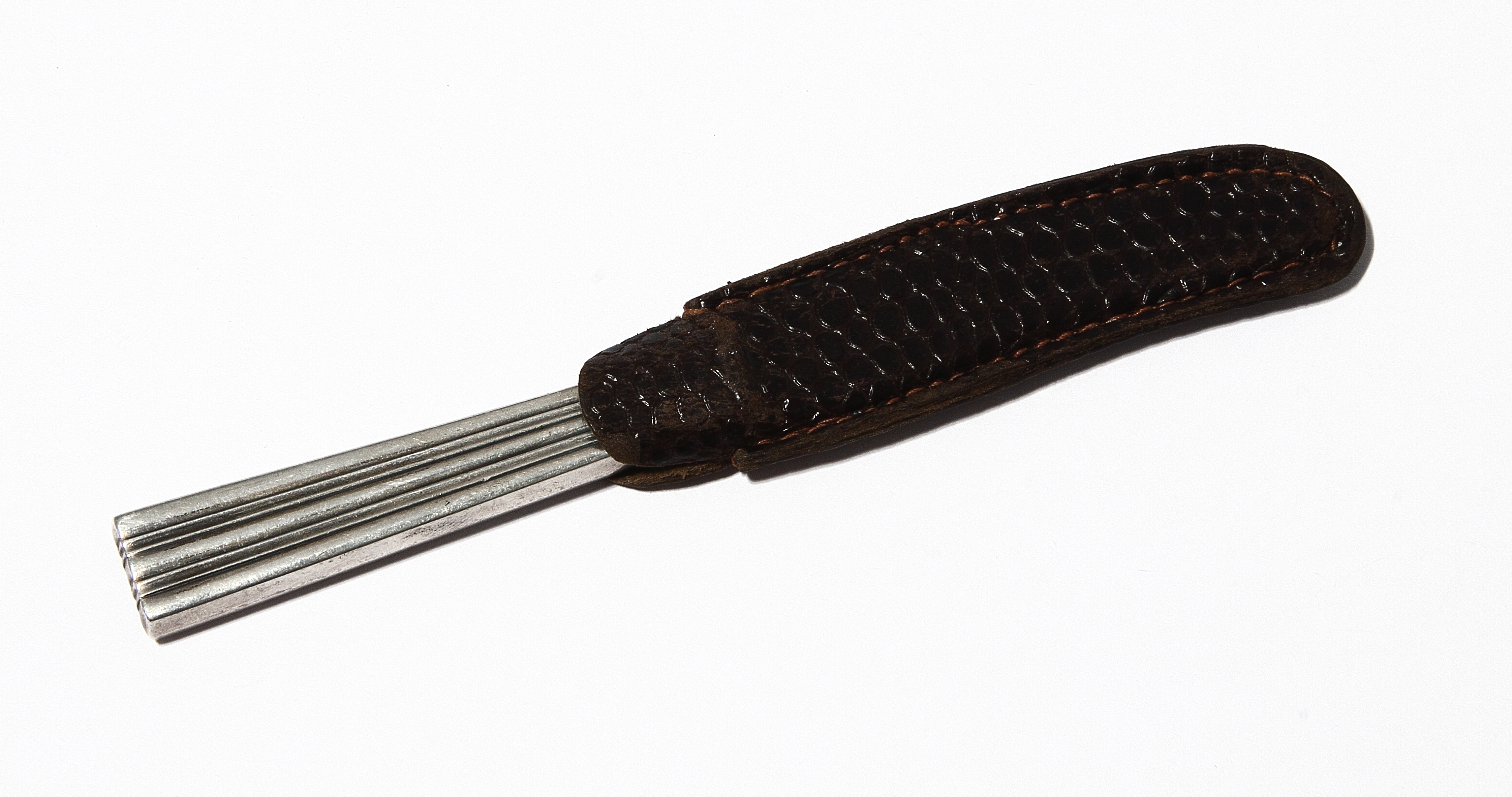 Вес - 19 граммов, включая стальное лезвие. Серебро 830 пробы.
