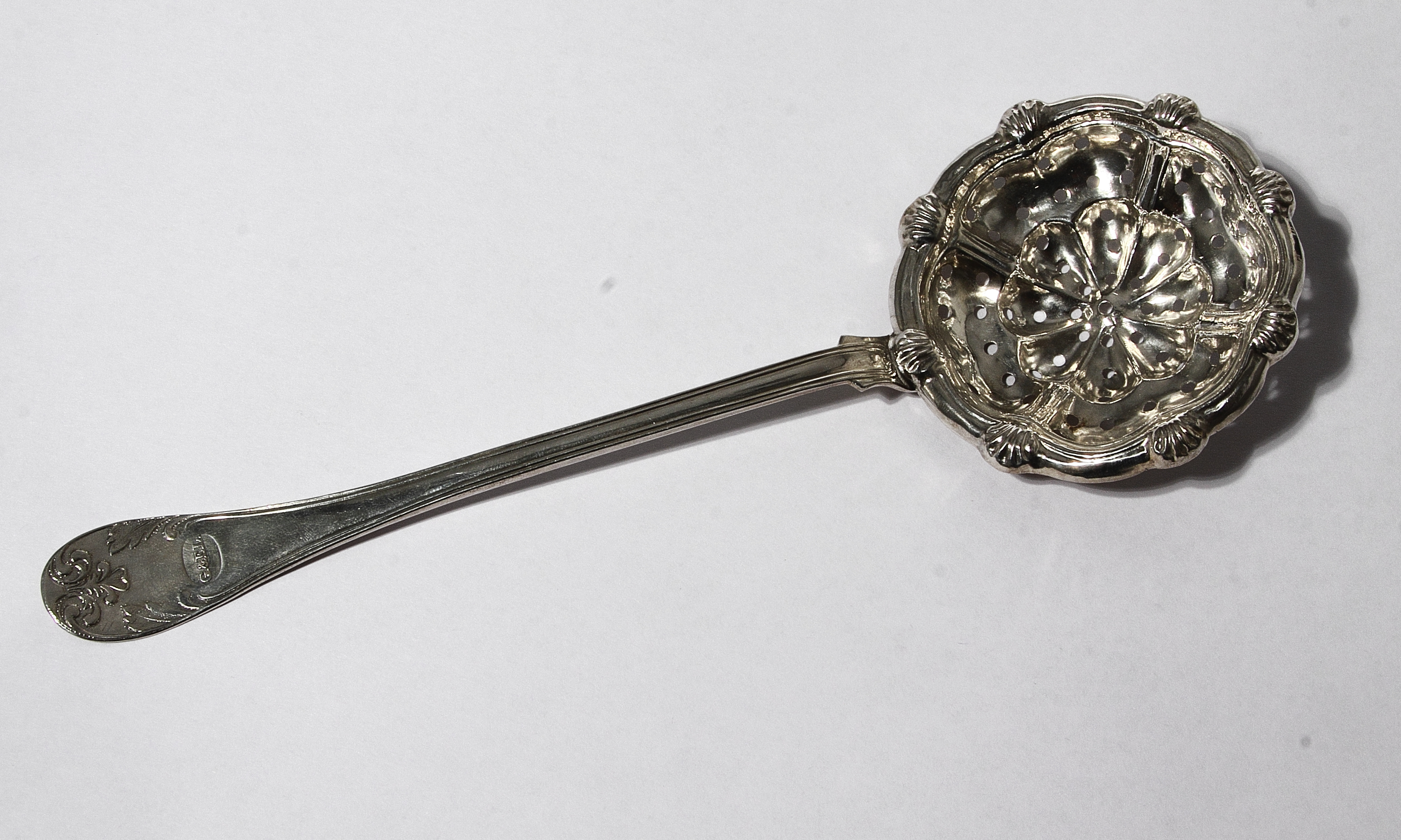 В данном лоте предлагается старинный серебряный половничек с перфорированным черпаком.