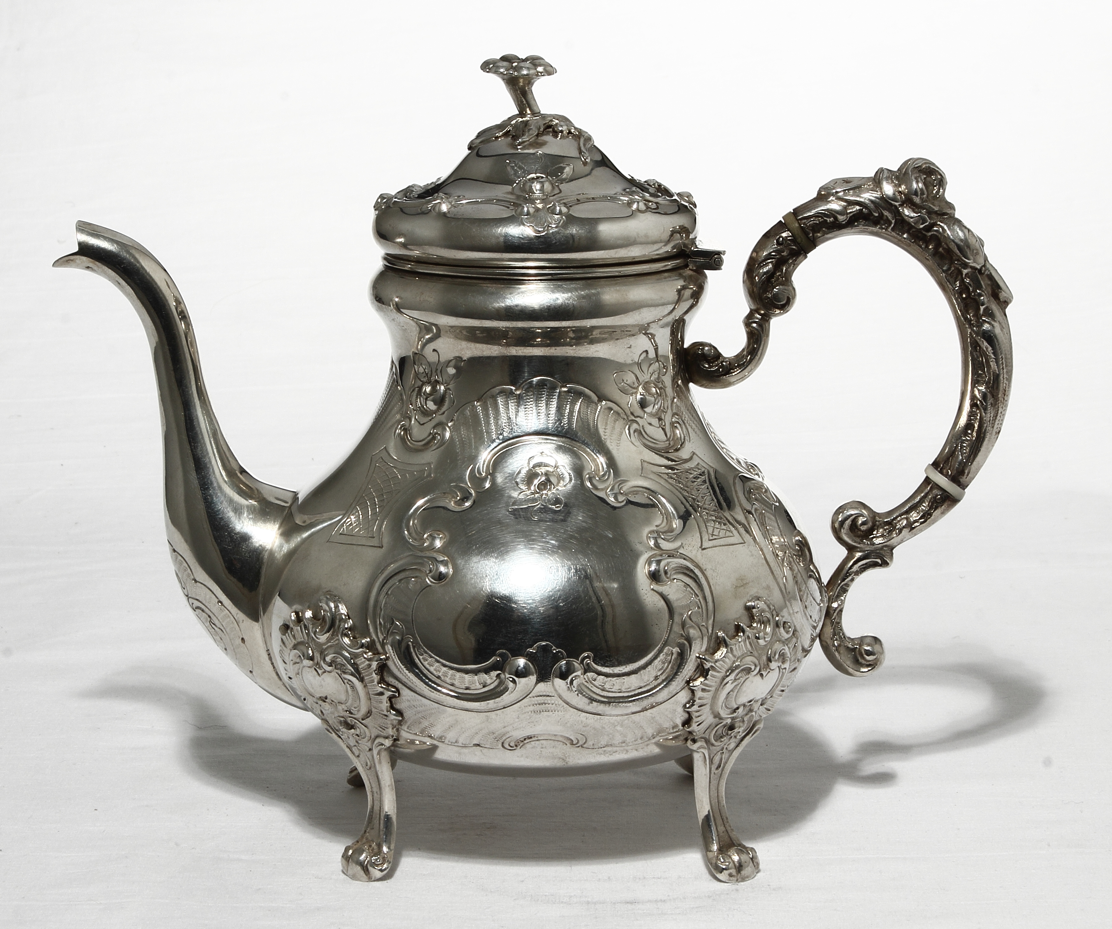 Без гравировок. У чайника, на ручке, было восстановлено нижнее термокольцо. Мелкие, совершенно незначительные, вмятинки на боках. Серые пятнышки и точки, видные на фотографиях, это обычная патина, которая без труда может быть очищена до серебряного блеска. Состояние смотрите на фотографиях. Если Вам что-то не видно на фотографиях, напишите, воспользовавшись опцией "Обсудить лот", выложу более подробные фотографии.
