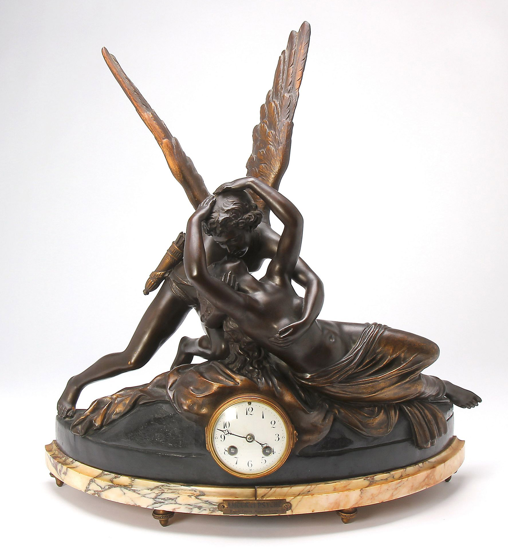 104668Бронзовые каминные часы с боем. Амур и Психея.