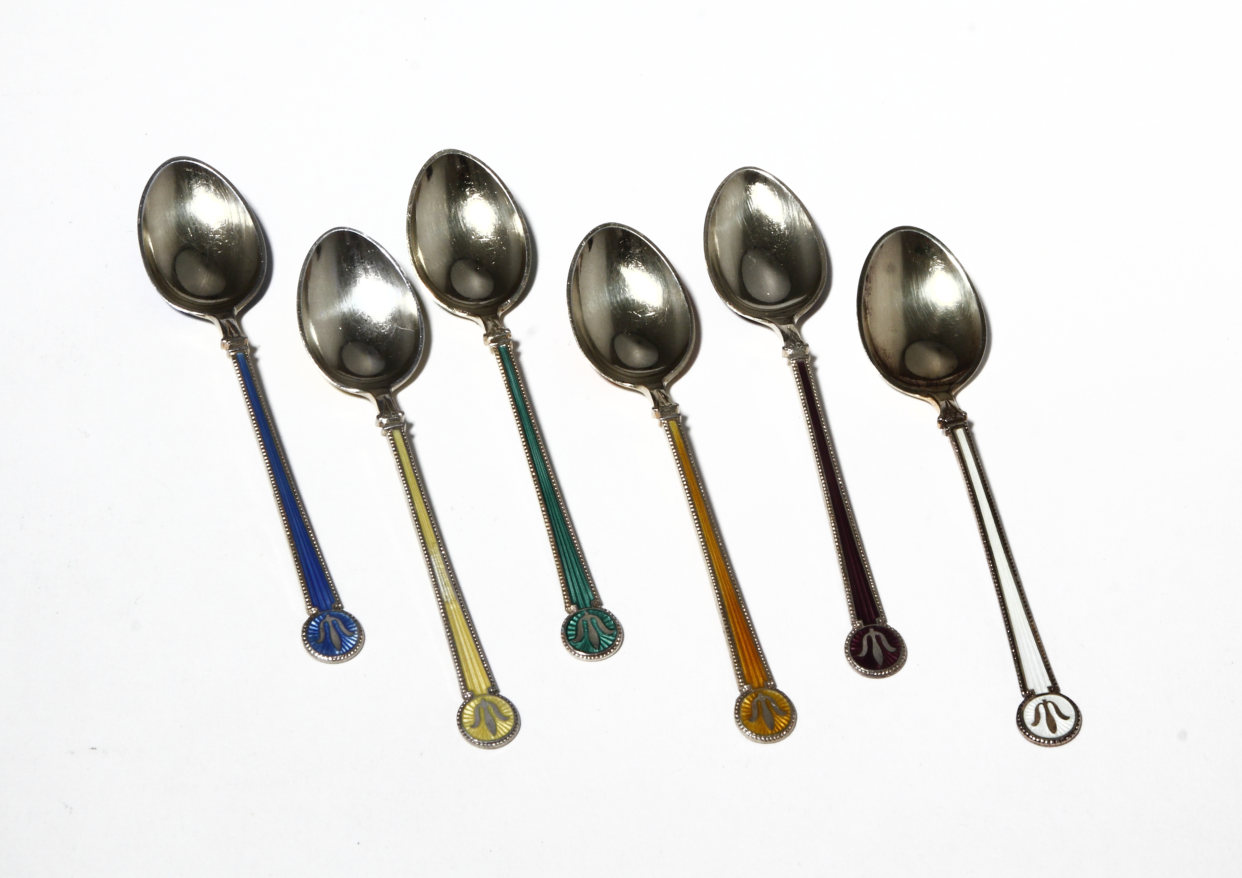 Шесть кофейных ложечек. Серебро, позолота, эмаль.