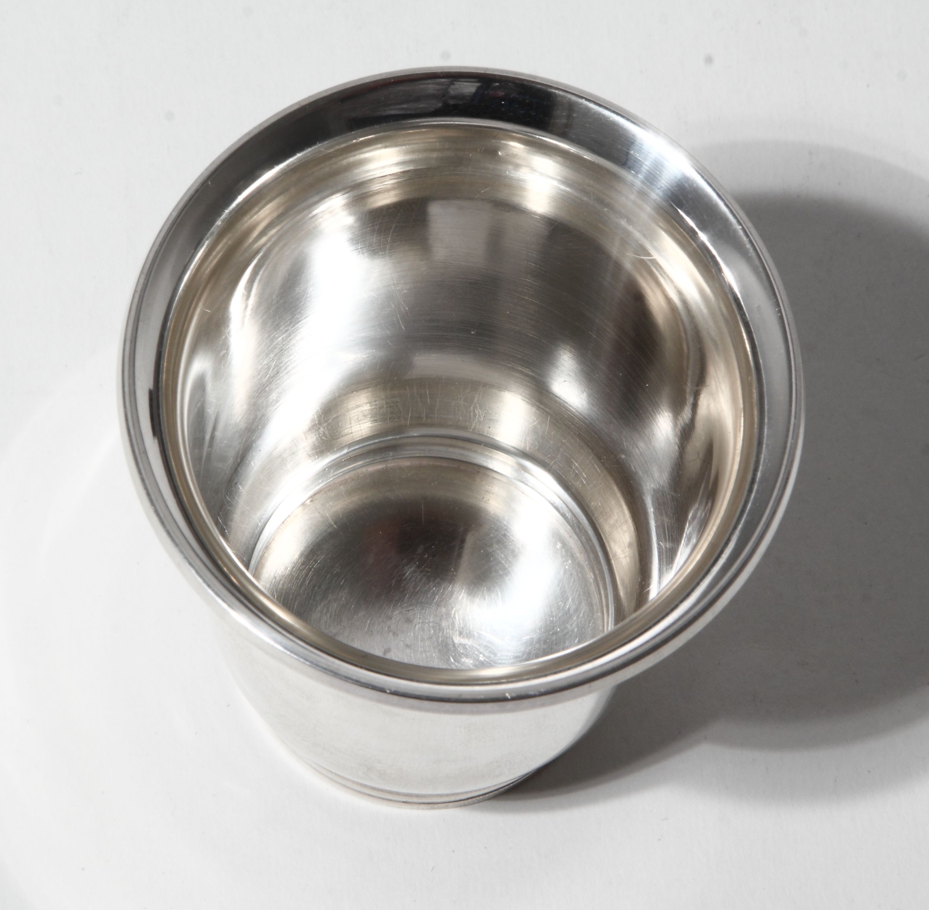 Высота - 7см, диаметр верха - 6,2см. Вес - 44 грамма серебра не ниже 826 пробы.