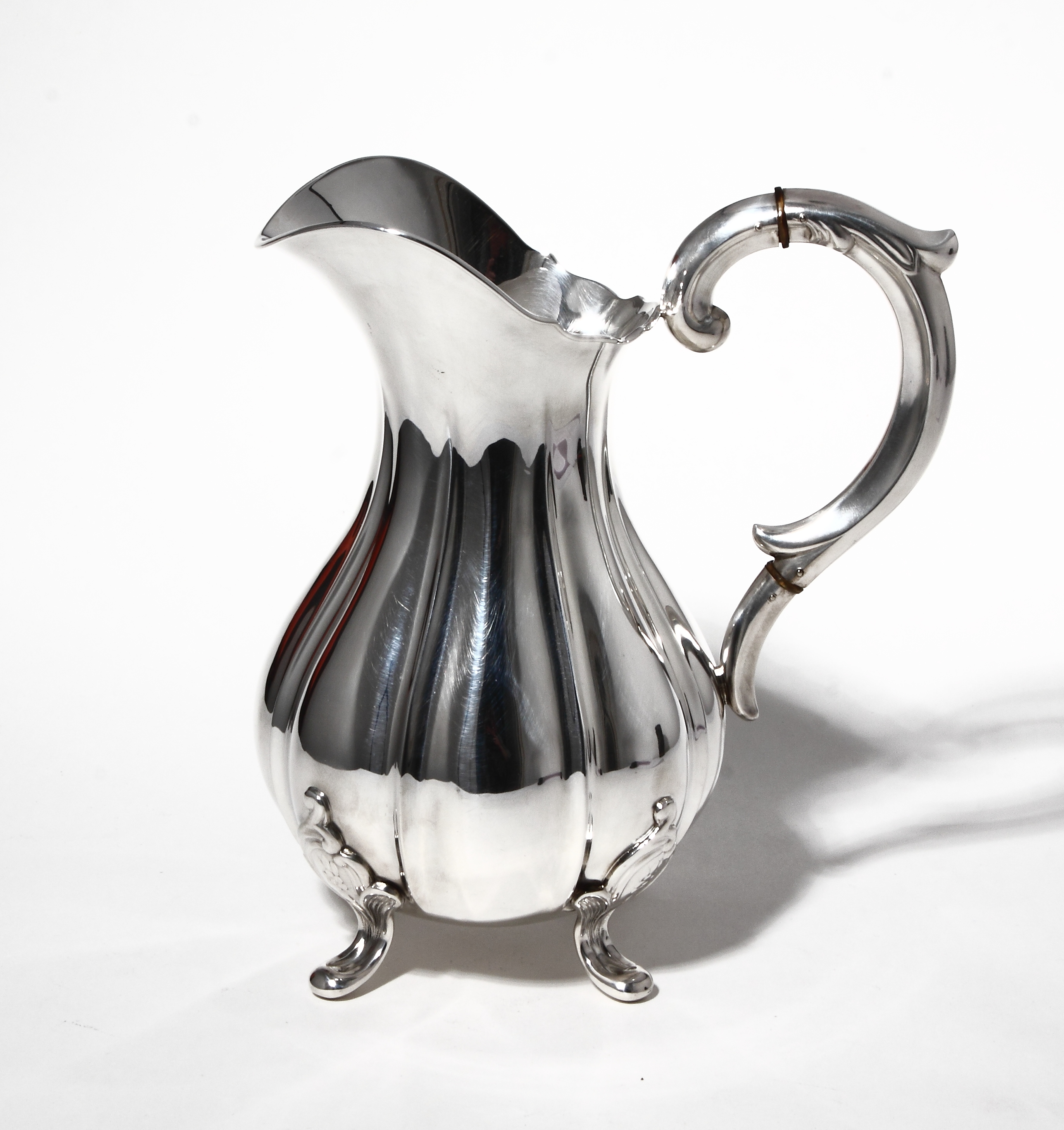 Выполненный в стиле рококо, кувшин декорирован характерными гранями, которые придают поверхности