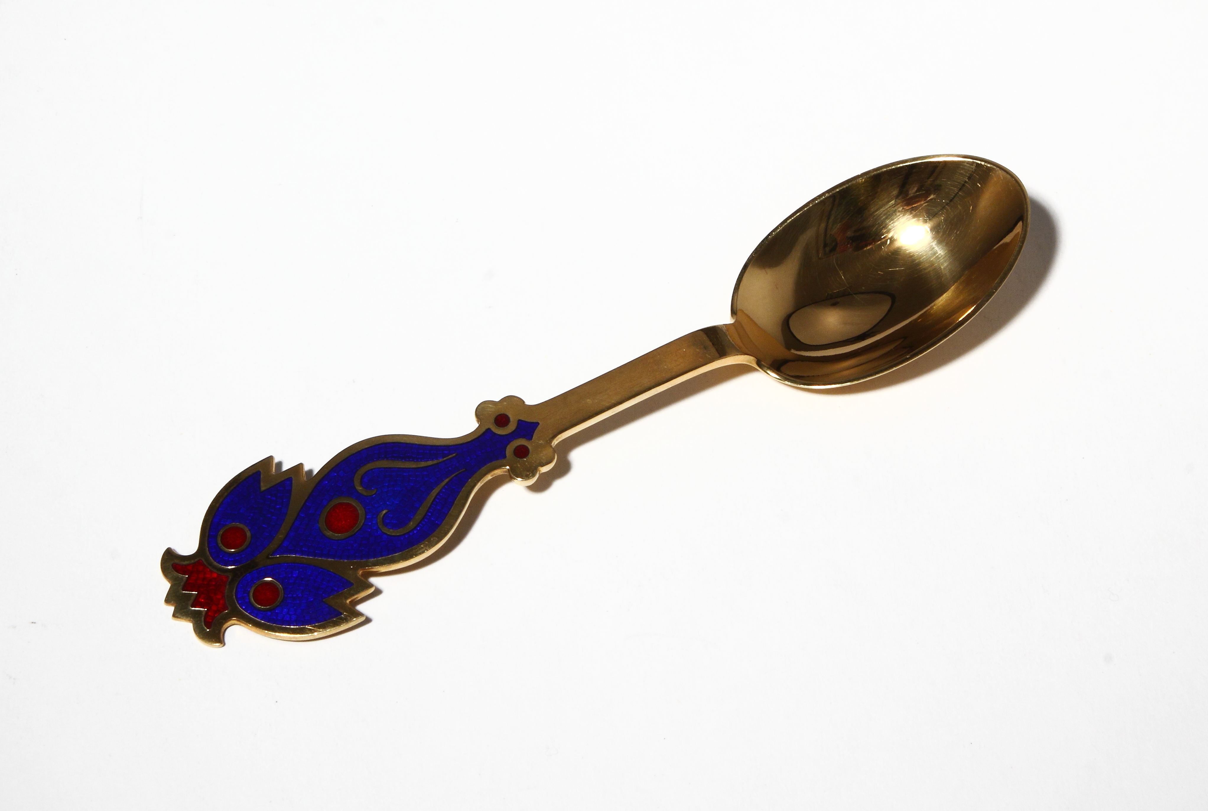 учка позолоченной ложки декорирована абстрактным эмалевым изображением птицы счастья. Дания, г.Копенгаген, A.MICHELSEN, 1974 год. Длина - 16см. Вес – 46 граммов серебра 925 пробы. Без гравировок. Состояние смотрите на фотографиях. Если Вам что-то не видно на фотографиях, напишите, воспользовавшись опцией "Обсудить лот", выложу более подробные фотографии. С 1910 года именитый датский производитель столового серебра A.Michelsen выпускает каждый год десертные приборы так называемой серии Christmas, которые традиционно датчане, да и не только, включают в рождественские подарки близким. Авторами дизайна становятся наиболее интересные датские дизайнеры, художники, скульпторы. В данном случае дизайн изделия был разработан художником Carl-Henning Pedersen. На обратной стороне ручек стоит клеймо автора дизайна. На изделии имеется клеймо «A.MICHELSEN STERLING DANMARK» - клеймо известного датского производителя серебряных изделий, поставщика королевского двора. Помимо авторства, данное клеймо удостоверяет, что изделие произведено в Дании из стерлингового серебра (925 проба).