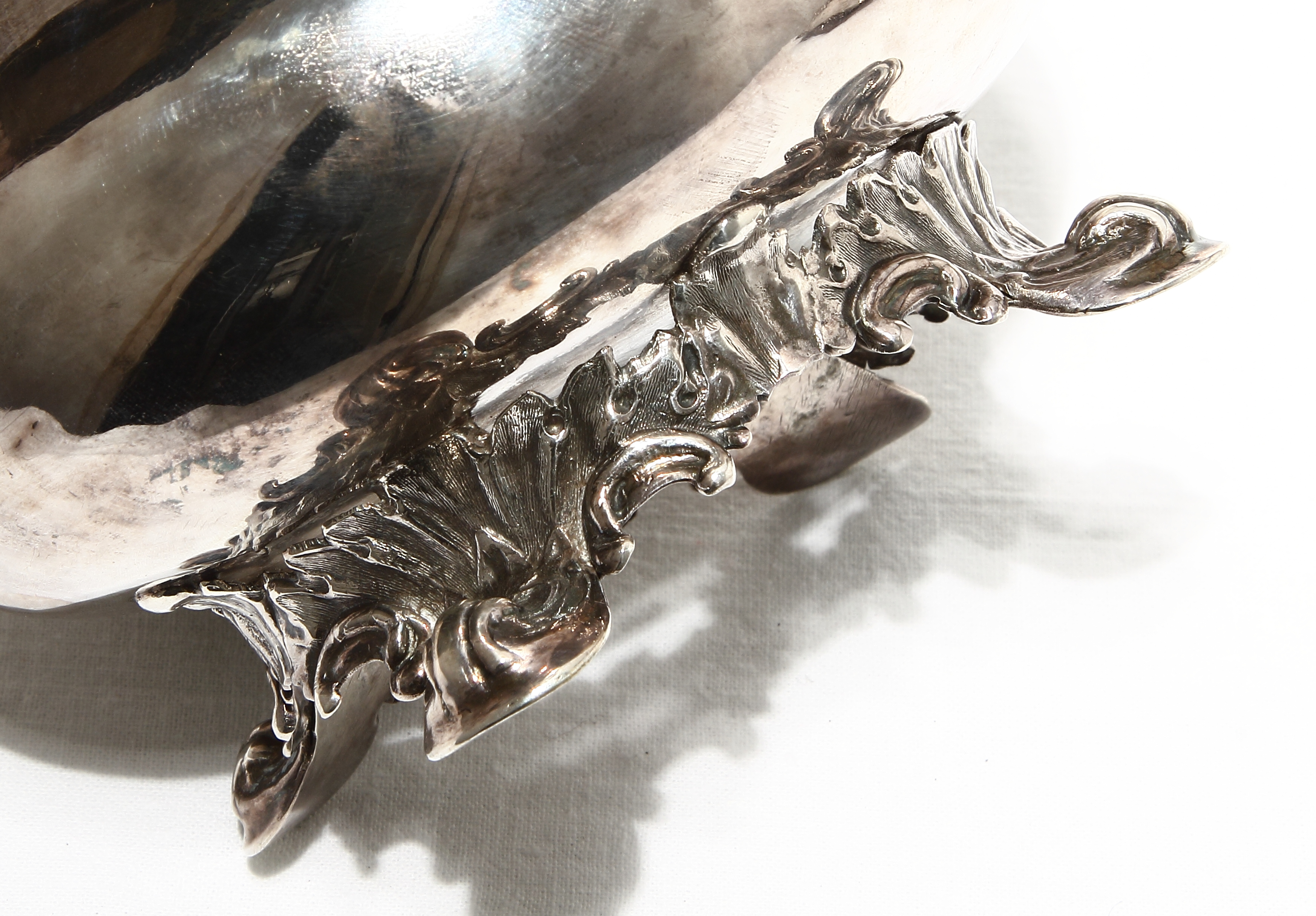 В данном лоте предлагается старинная большая серебряная сахарница на подставке.
