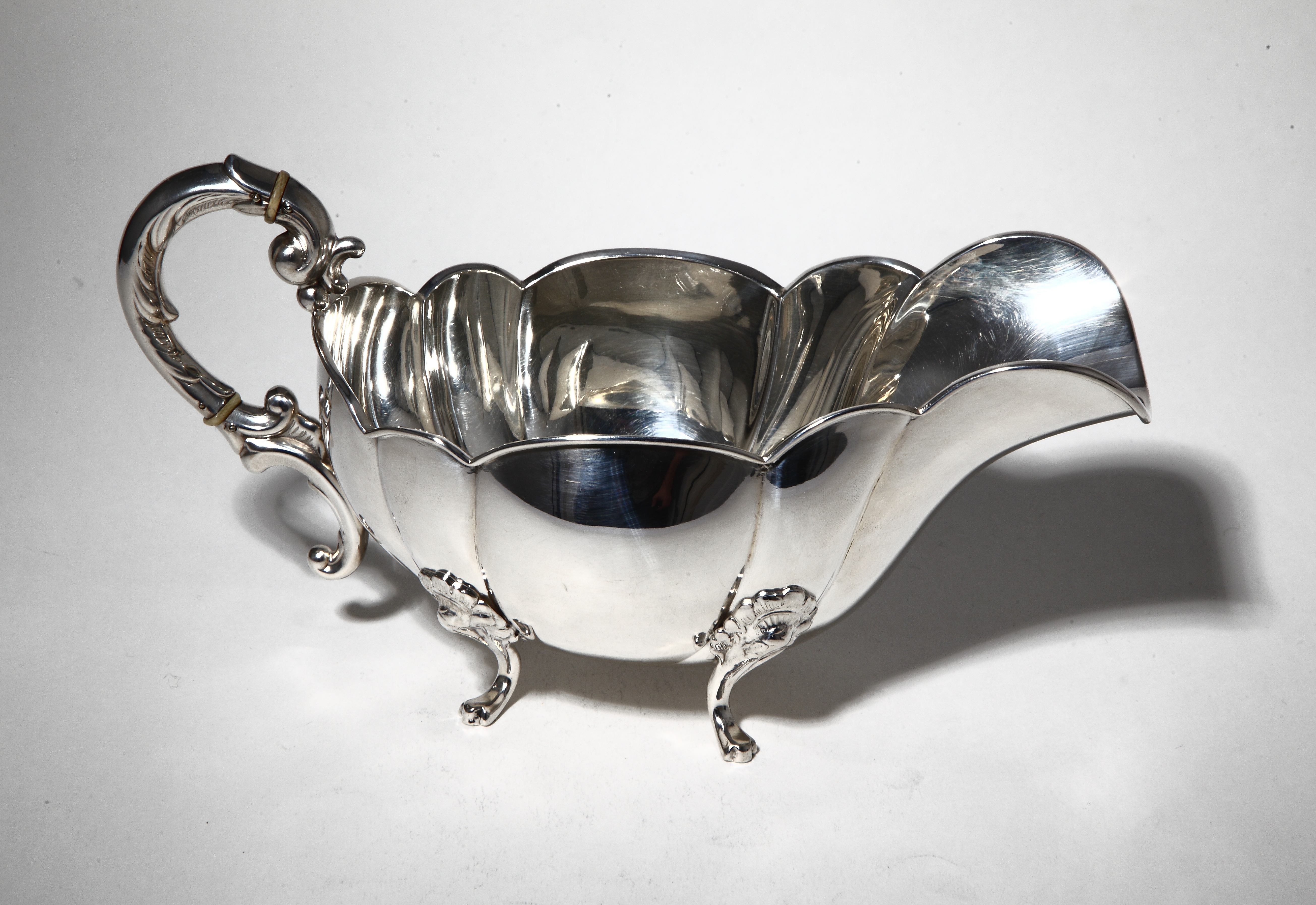 Выполненный в стиле рококо, соусник декорирован характерными гранями, которые придают поверхности