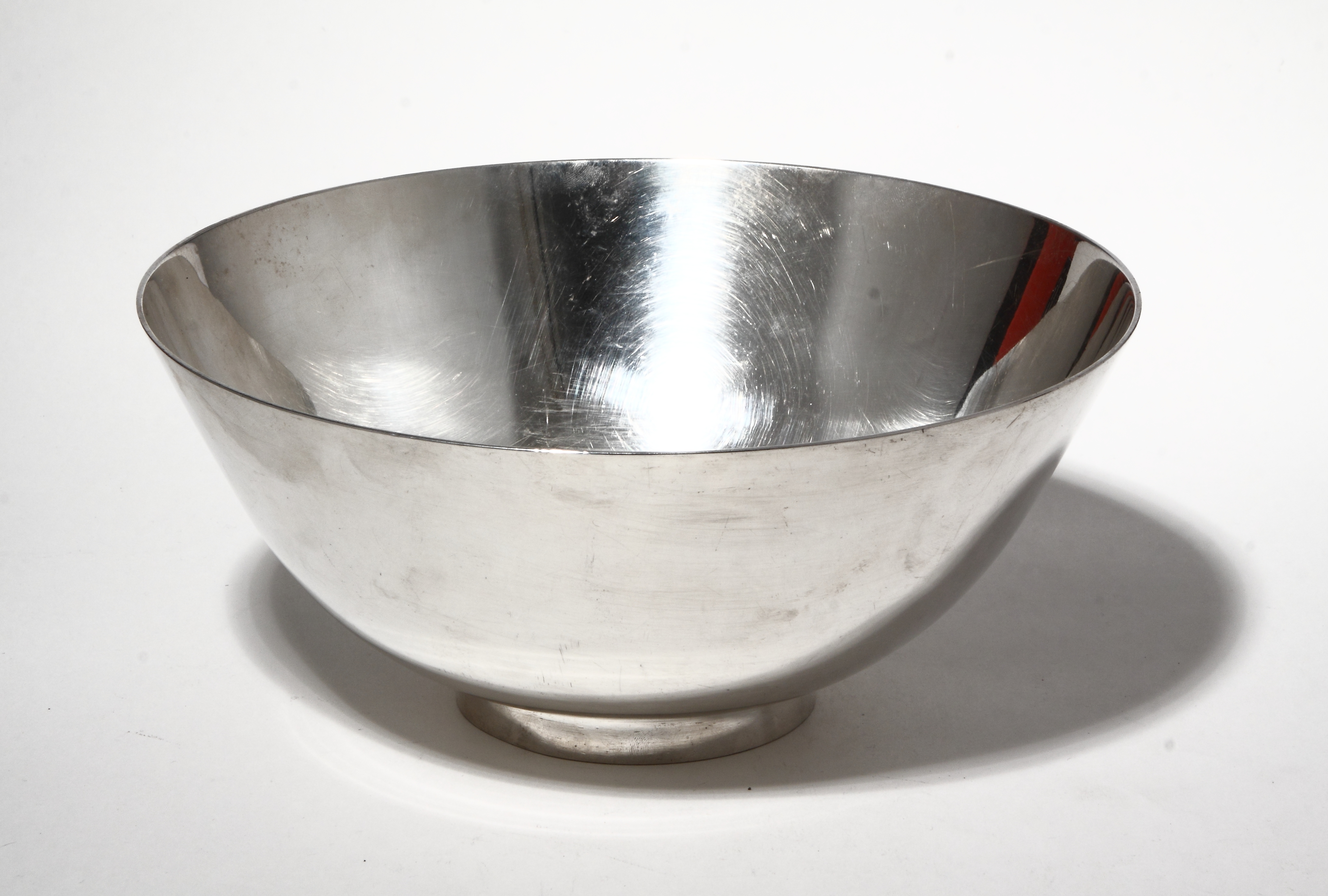 Высота - 10см, диаметр верха - 23см. Вес - 730 граммов серебра 925 пробы.