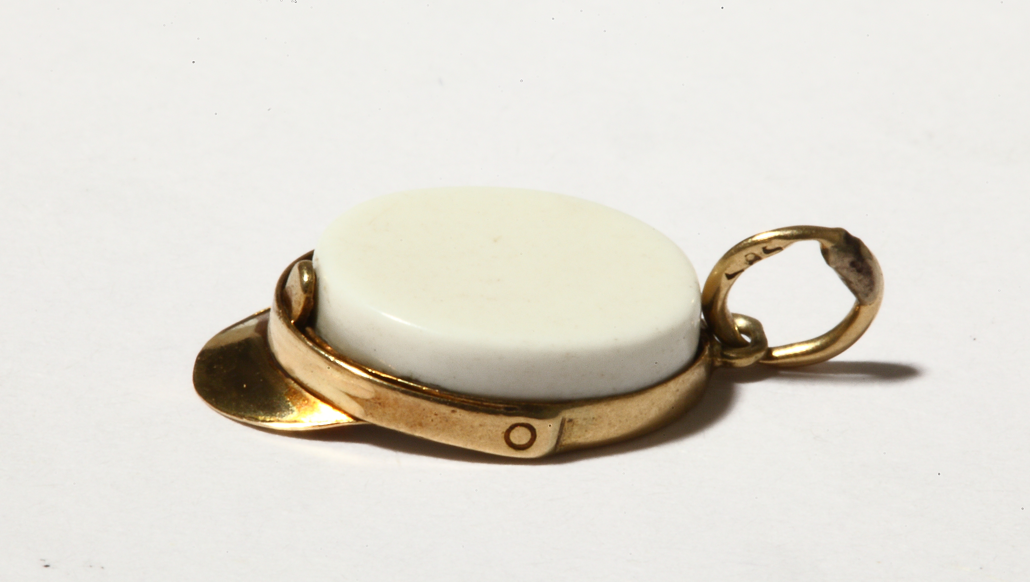 На козырьке стоит цифровое клеймо "585", которое удостоверяет, что изделие