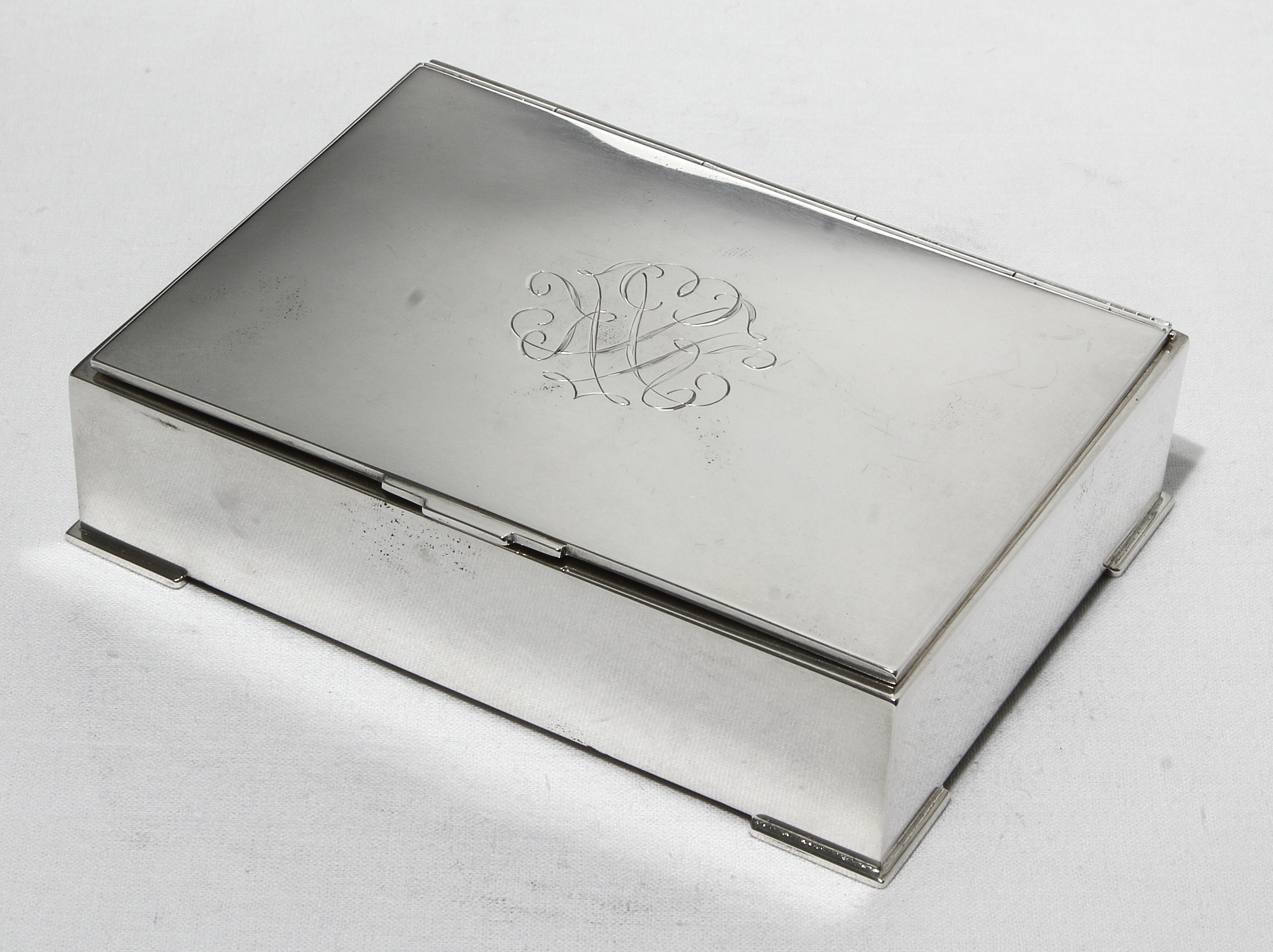 |  |  |  | На лицевой стороне крышки большой красивый вензель. Без вмятин, крупных царапин и иных существенных повреждений. Серые пятнышки и точки, видные на фотографиях, это обычная патина, которая без труда может быть очищена до серебряного блеска. Состояние смотрите на фотографиях. Если Вам что-то не видно на фотографиях, напишите, воспользовавшись опцией "Обсудить лот", выложу более подробные фотографии.