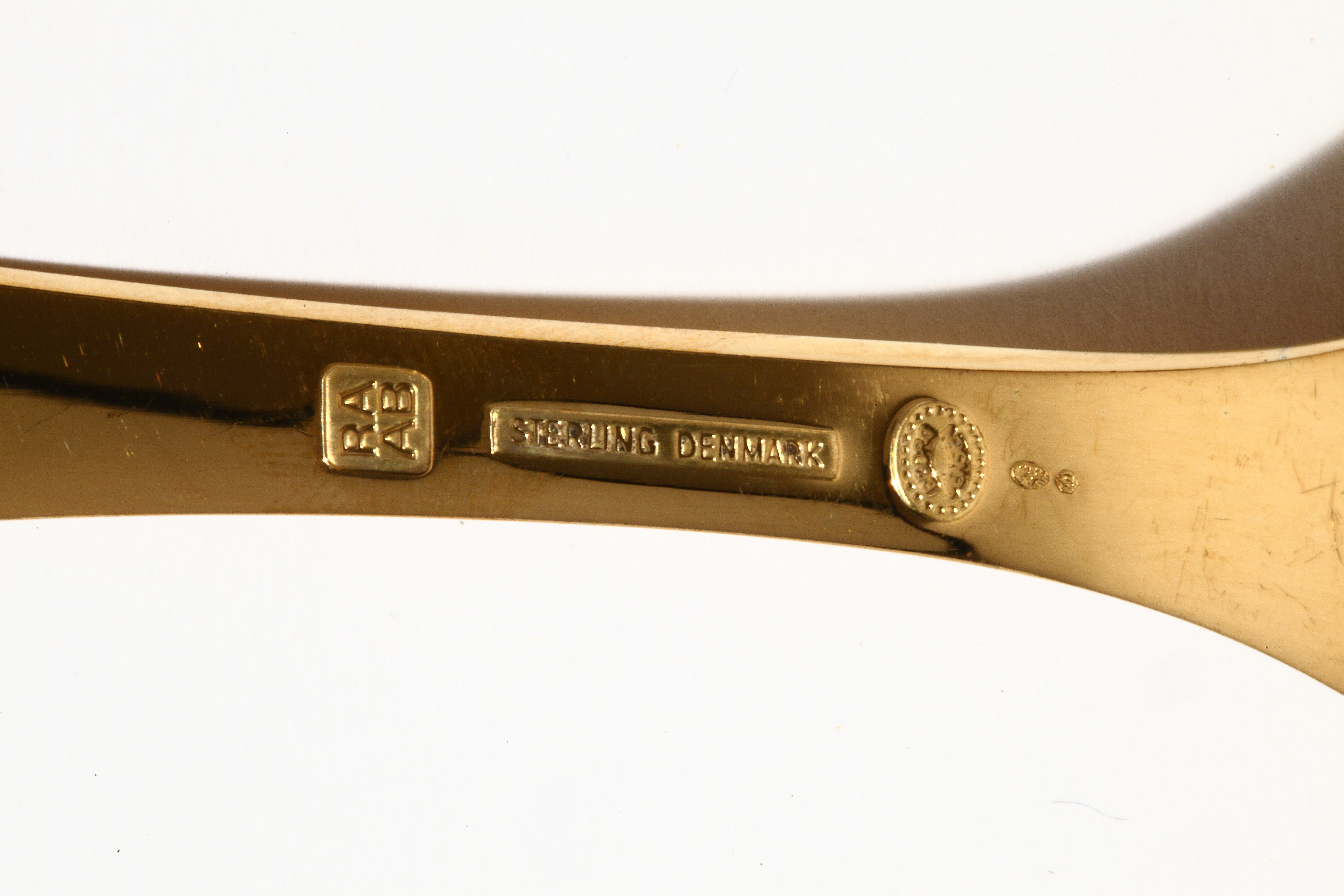 Десертная ложечка 1979 года из годовой серии « астения сельской местности Дании»от всемирно известного дизайнерского дома «Georg Jensen».Будет великолепным подарком для тех, кто родился в 1979 году.Полностью позолоченная ложка имеет приятную обтекаемую форму.На верхней части ручки с внешней стороны изображен лист лесного щавеля (эмаль),с обратной стороны ручки указан 1979 год.Изделия годовой серии выпускалось только в течение одного года, затем производственные формы уничтожались.Дания, Копенгаген, Georg Jensen, 1979 год.«Georg Jensen» - один из старейших дизайнерских домов Скандинавии, основанный в 1904 году выдающимсяювелиром Джорджем Енсеном (1866-1935). После смерти художника «New York Herald Tribune» чрезвычайноемко и выразительно определила его непревзойденное мастерство: «…The greatest silversmith of the last 300years…» ("величайший мастер серебряных дел за последние 300 лет").Сегодня дизайнерский дом «Georg Jensen» является частью ведущей европейской компании «Royal ScandinaviaGroup». Главные черты любого товара, носящего имя Georg Jensen - это функциональность, тщательный выборформы и материала, а также высокое качество исполнения.Чтобы всегда идти в ногу со временем, дизайнерский дом «Georg Jensen» привлекает к разработке новыхизделий только всемирно известных современных дизайнеров. Изделия, выпущенные в середине ХХ векадомом «Georg Jensen», уже сейчас ставят ценовые рекорды на аукционах серебряной посуды в США и Европе.С приходом в компанию талантливейшего дизайнера Annelise Bjørner была разработана годовая серия наборовдля десерта. Основным мотивом этой серии стала скромная, но трогательная своей изящной простотойсельская природа Дании. Каждое изделие из этой серии украшено одним из цветков, который имеет своеконкретное название. Например, ручка предлагаемой ложечки 1979 года декорирована листом лесного щавеля.Ложки из серии « астения сельской местности Дании» выпускались с 1971 по 2003 год.Длина ложечки - 15см.Вес – 47 граммов серебра 925 пробы.Без гравировок.Смотрите фотографии.Если Вам что-то не видно на фотографиях, напишите, воспользовавшись опцией"Обсудить лот", выложу более подробные фотографии.На ложечке стоят следующие клейма:надпись "GEORG JENSEN" в овале, обрамленная точками – клеймо дизайнерского дома «Georg Jensen»; клеймоиспользуется с 1945 года по настоящее время;буквы «RA AB» - клеймо автора дизайна Annelise Bjørner;надпись «Denmark Sterling» - клеймо, удостоверяющее, что изделие выполнено в Дании из серебра 925 пробы.