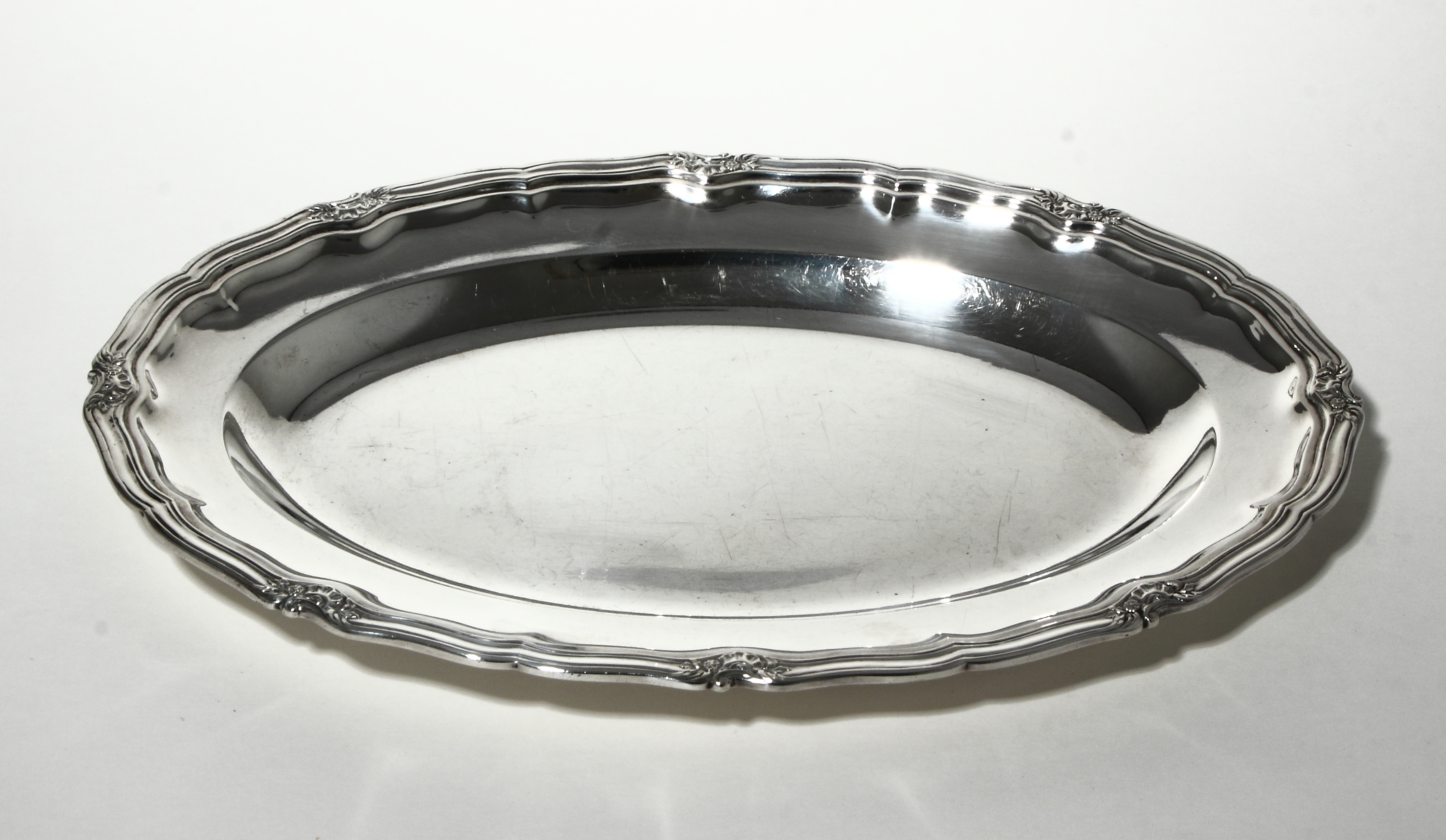 В данном лоте предлагается серебряный овальный поднос или блюдо.
