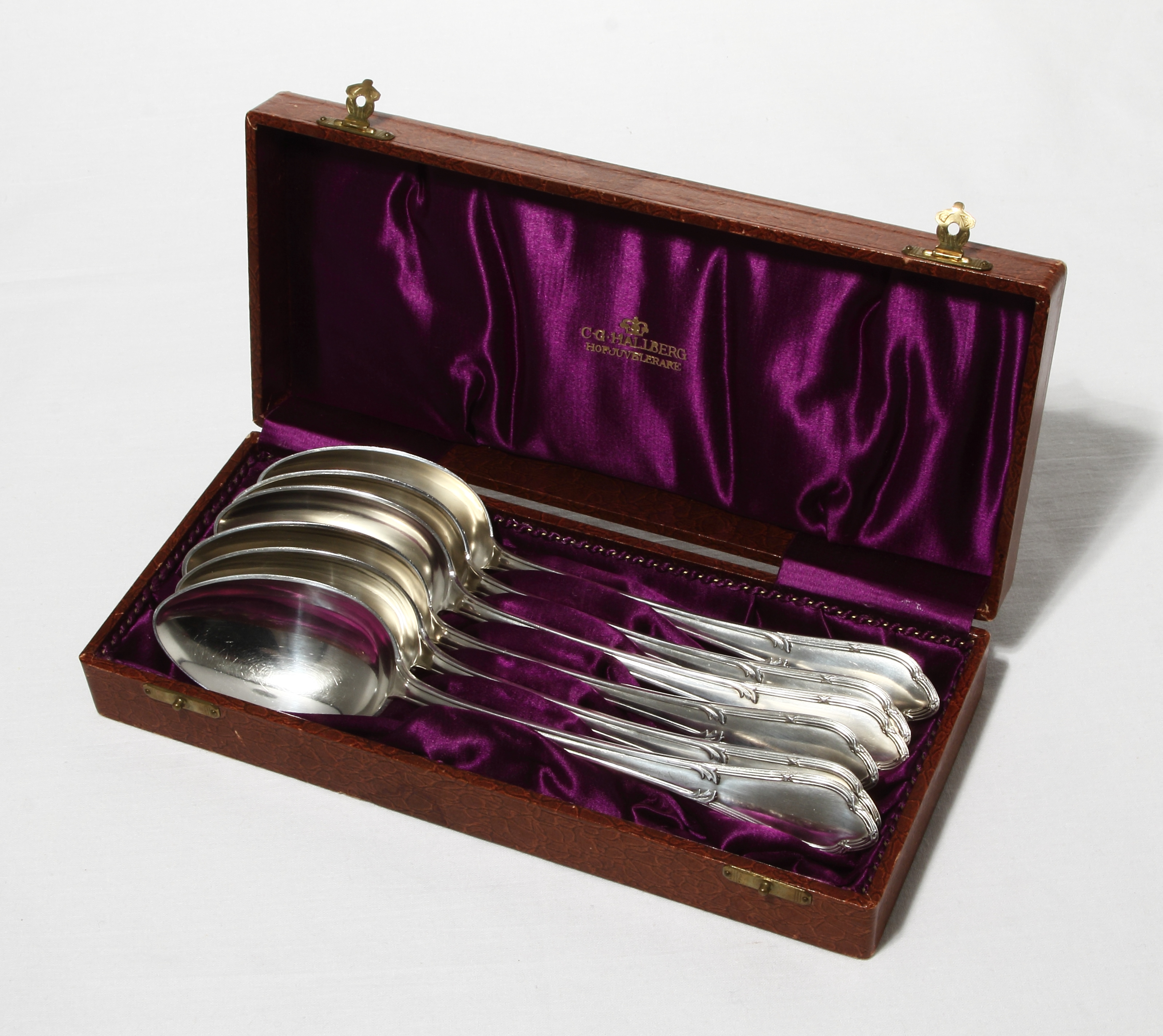 шесть серебряных массивных обеденных ложек.