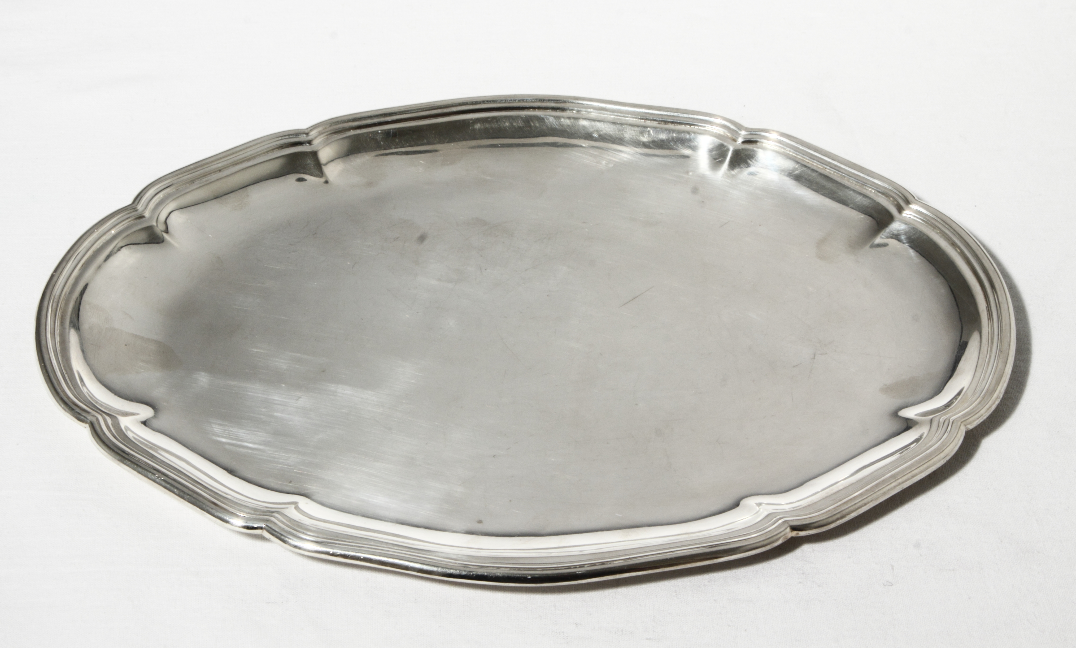 В данном лоте предлагается серебряный поднос в стиле рококо.