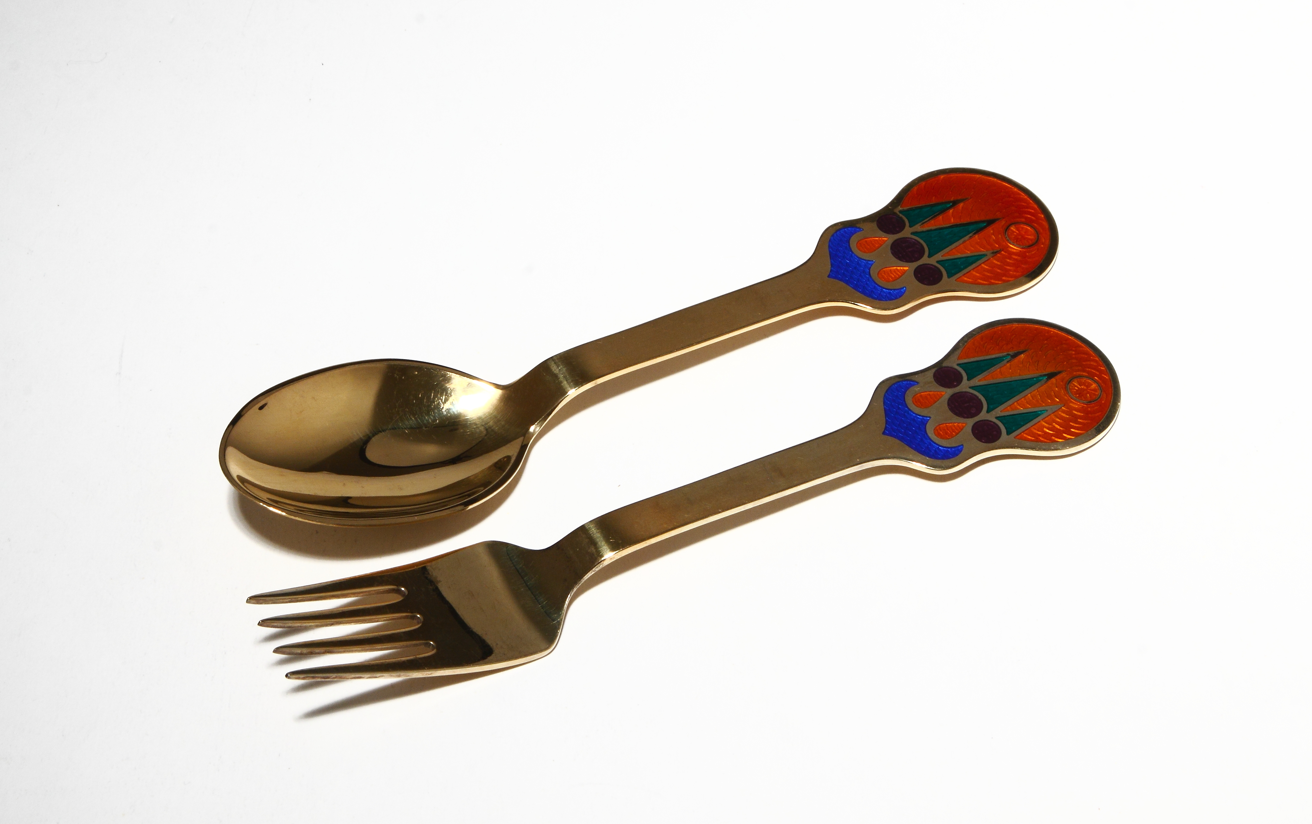 |  | учки позолоченных изделий имеют фигурное окончание, где помещается абстрактный яркий пейзаж, выполненный в технике гильоширования в сочетании с перегородчатой эмалью. На обратной стороне ручки отмечен 1979 год. Дания, г.Копенгаген, A.MICHELSEN, 1979 год. Ложка: длина - 16,3см. Вилка: длина - 16,3см. Общий вес – 91 грамм серебра 925 пробы. Без гравировок. Состояние смотрите на фотографиях. Если Вам что-то не видно на фотографиях, напишите, воспользовавшись опцией "Обсудить лот", выложу более подробные фотографии. С 1910 года именитый датский производитель столового серебра A.Michelsen выпускает каждый год так называемую Christmas Spoon, которую традиционно датчане, да и не только, включают в рождественские подарки близким. Авторами дизайна ложек становятся наиболее интересные датские дизайнеры, художники, скульпторы. В данном случае дизайн изделия был разработан художником Lars Akirke. На обратной стороне ручек выгравирована подпись дизайнера «Lars Akirke». На изделиях имеется клеймо «A.MICHELSEN STERLING DANMARK» известного датского производителя серебряных изделий, поставщика королевского двора. Помимо авторства, данное клеймо удостоверяет, что изделия произведены в Дании из стерлингового серебра (925 проба). Клеймо «925S» также удостоверяет 925 пробу серебра. Клеймо в виде цифры «1979», сообщает, что изделия были апробированы в 1979 году. Кликнув по ниже указанным картинкам, Вы сможете рассмотреть лот на более качественных фотографиях, чем это позволяет сделать "Молоток":