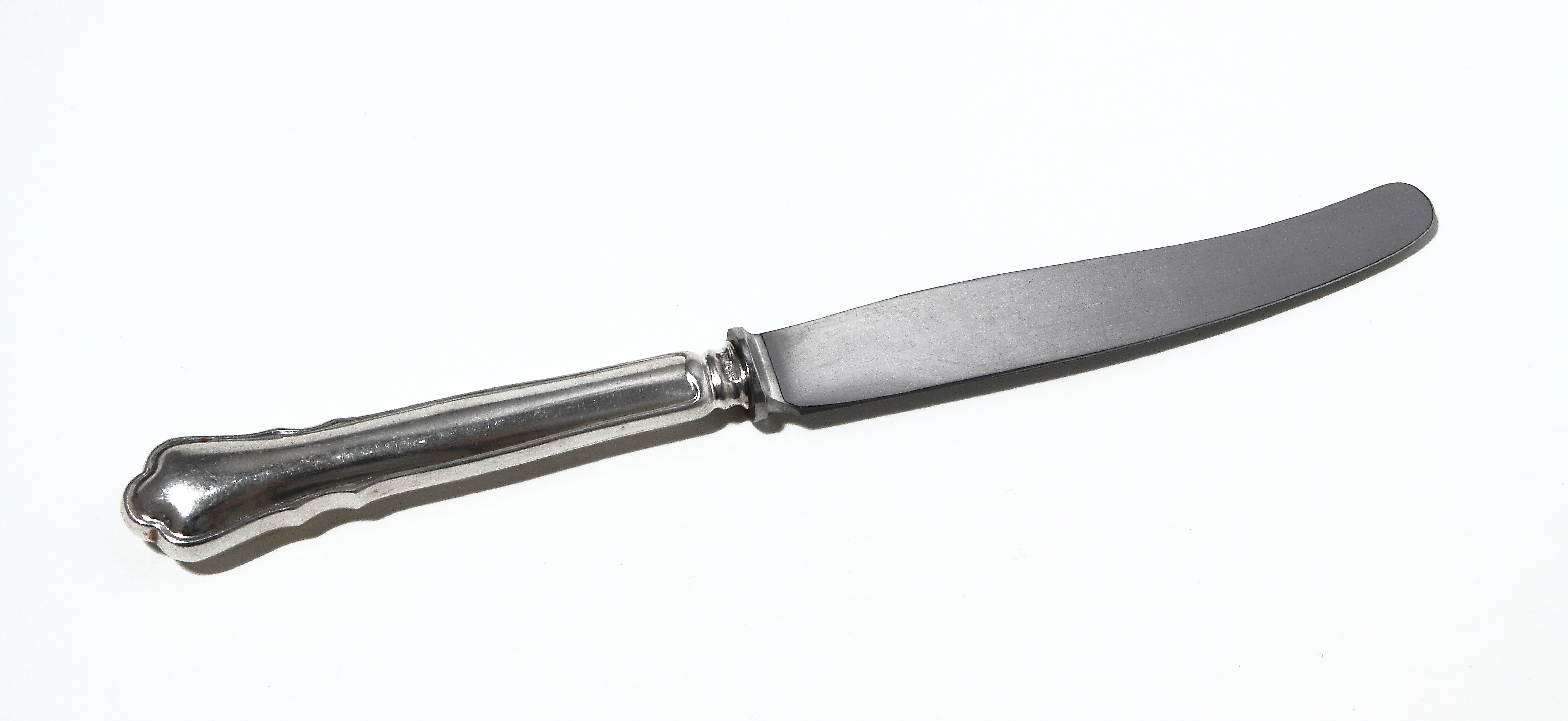 Вес - 52 грамма, включая стальное лезвие. Серебро 830 пробы.