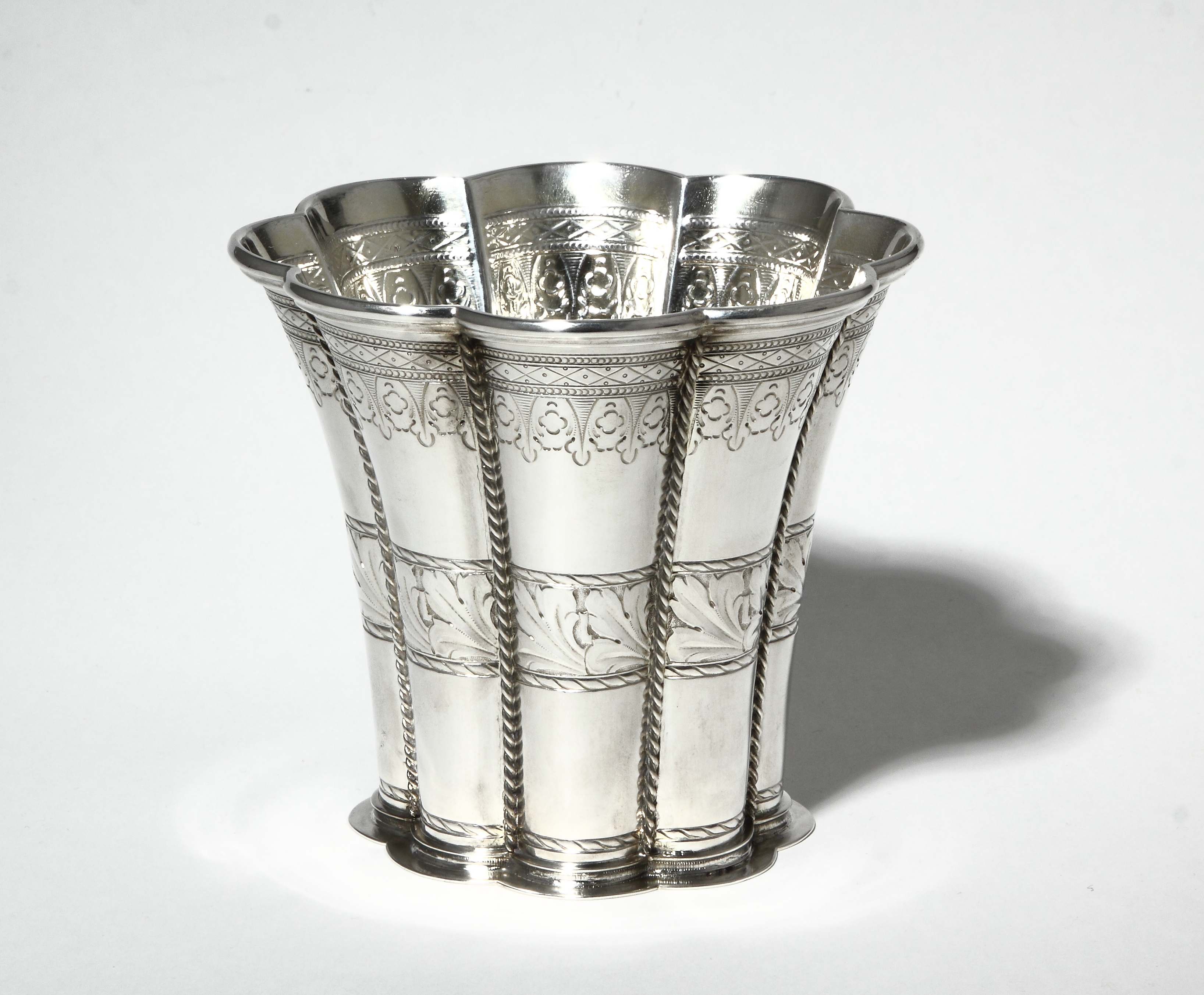 В данном лоте предлагается большой серебряный бокал – традиционный датский "Margrethe cup". Согласно преданию, королева Маргрет I (1353-1412гг.) очень боялась быть отравленной, поэтому у нее было 7 специальных слуг, которые пробовали напитки перед королевской трапезой. Так как королевская особа не могла прикоснуться устами к бокалу, из которого уже пили слуги, придворным ювелиром был разработан бокал особого дизайна, состоящего из 8 лепестков. Практически в каждом доме настоящего датчанина есть аналогичный "Margrethe cup", поскольку это своего рода символ здоровья и благополучия, аналог нашей подковы, висящей над дверью. Используют их не только для употребления вина, но и как вазочки для салфеток или небольших цветов. Дания, 1948 год. Высота - 11,9см, диаметр верха - 13см. Вес - 411 граммов серебра 830 пробы. Без гравировок. Без вмятин, крупных царапин и иных существенных повреждений. Состояние смотрите на фотографиях. Если Вам что-то не видно на фотографиях, напишите, воспользовавшись опцией "Обсудить лот", выложу более подробные фотографии. Клеймо мастерской. Цифра "1948" удостоверяет год клеймения. Цифровое клеймо "830S" удостоверяет, что изделие выполнено из серебра 830 пробы. В описании данного лота представлены лишь краткие сведения о нем. Если Вы действительно заинтересованы в покупке этого лота и не можете найти важной для Вас информации, дополнительных фотографий, размеров, описания клейм, Вы всегда можете запросить эту информацию через форму обсуждения лота - "задать вопрос продавцу".  Кликнув по ниже указанным картинкам, Вы сможете рассмотреть лот на более качественных фотографиях, чем это позволяет сделать "Молоток":