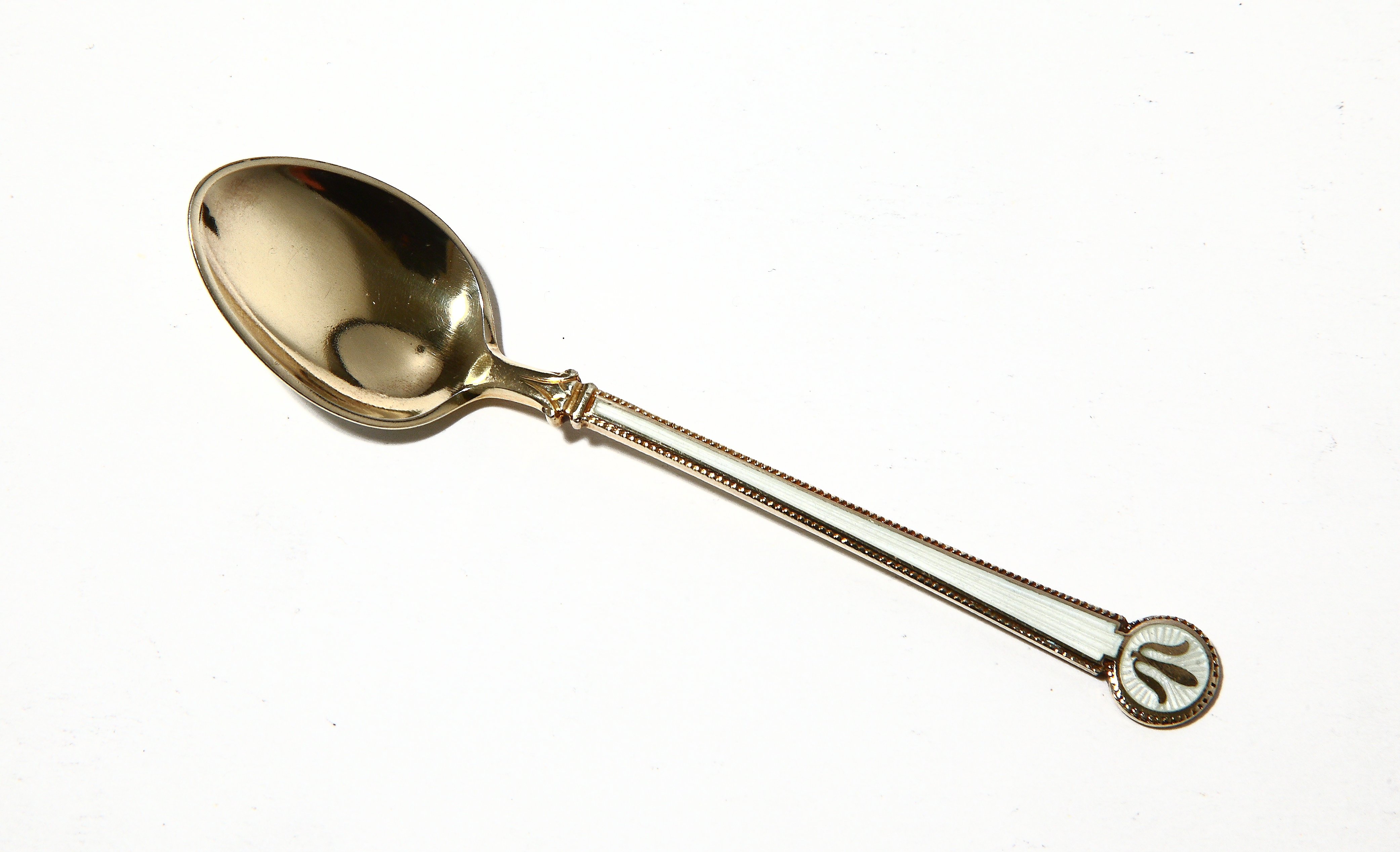 Кофейная ложечка. Серебро, позолота, эмаль.