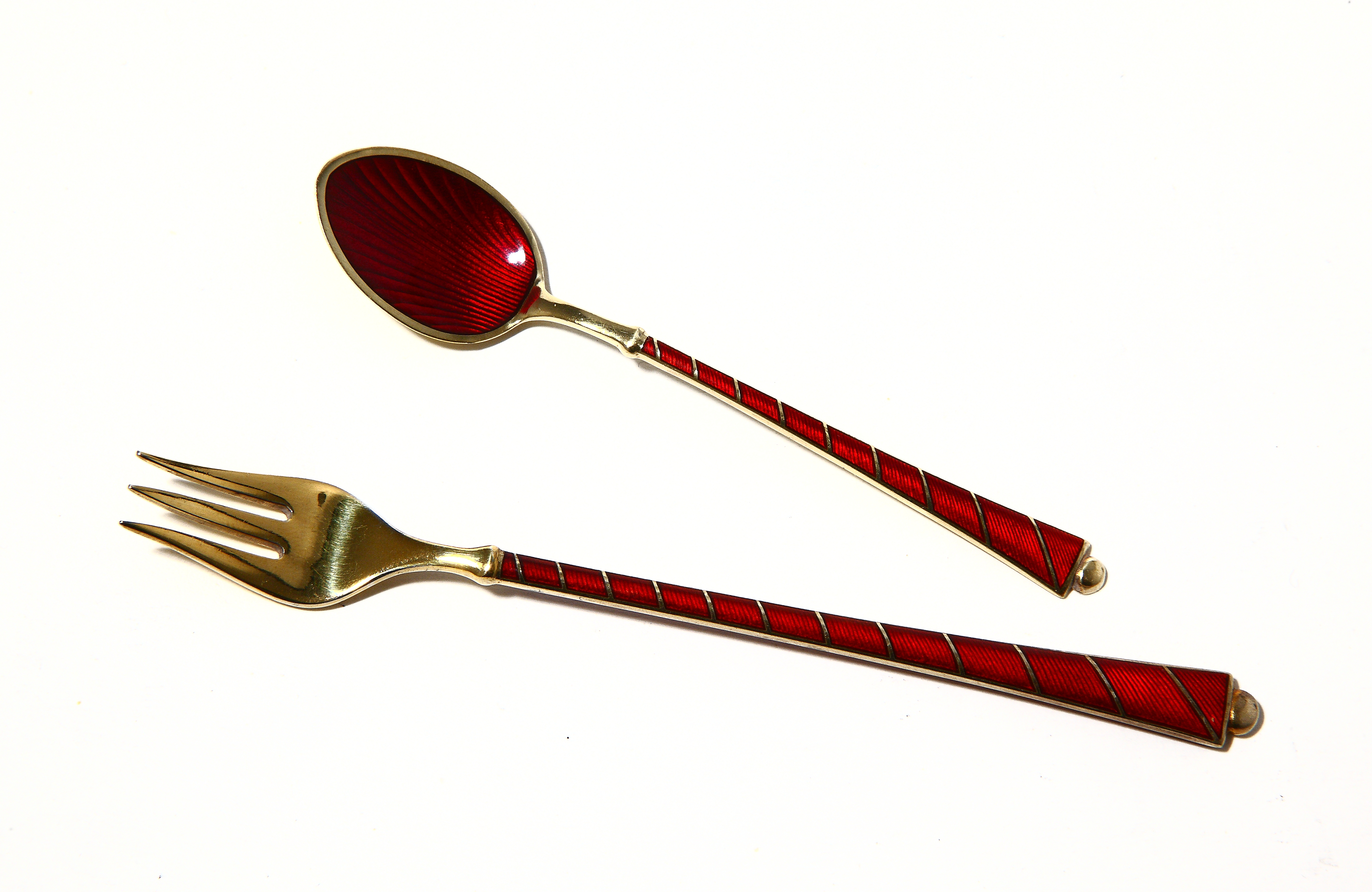Кофейная ложечка и десертная вилочка. Эмаль.