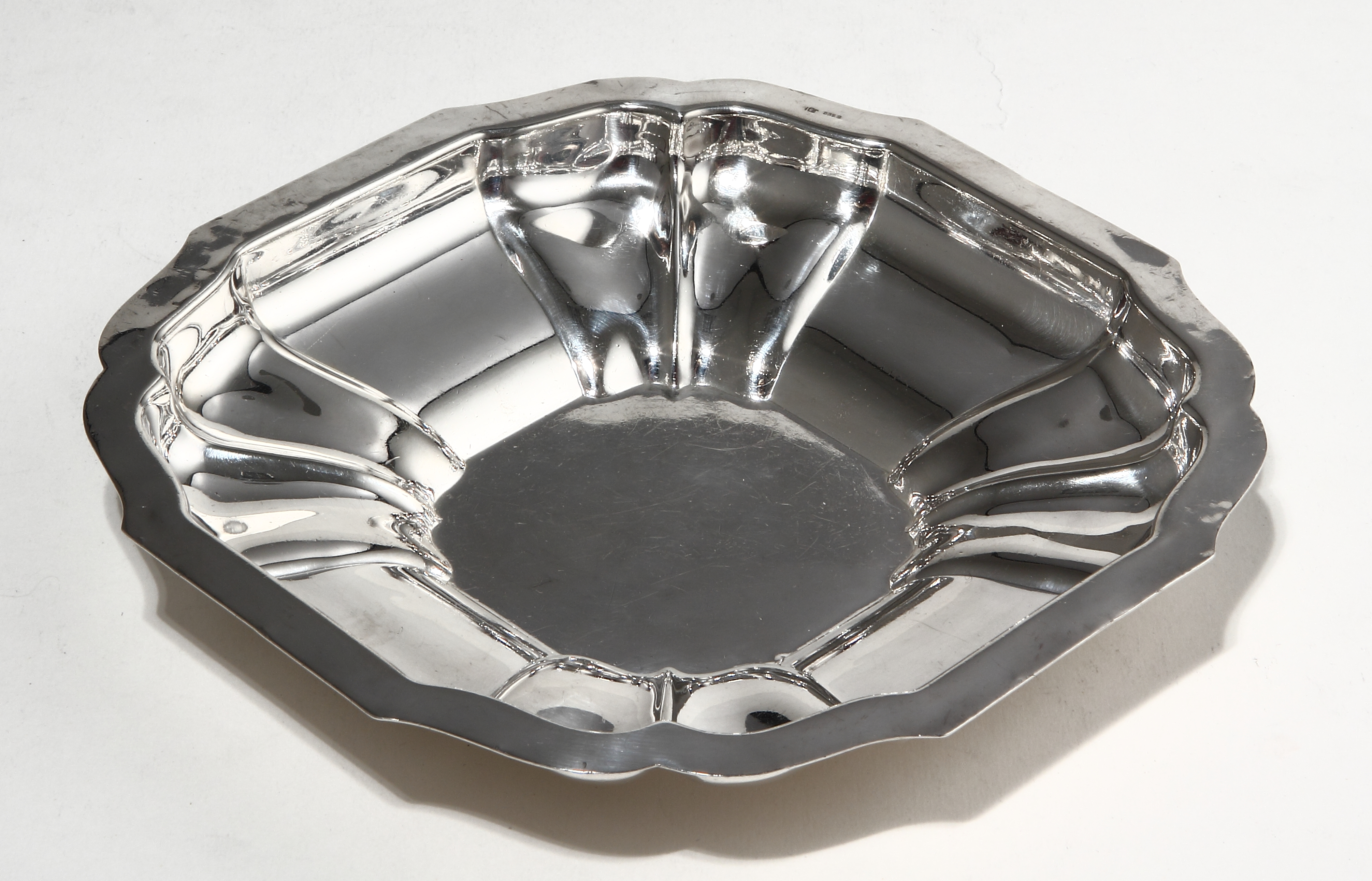 Дания, середина 20 века. Длина/ширина - 16,3см. Вес - 160 граммов серебра 835 пробы. Без гравировок. Мелкие, абсолютно несущественные вмятинки на полях. Состояние смотрите на фотографиях. Если Вам что-то не видно на фотографиях, напишите, воспользовавшись опцией "Обсудить лот", выложу более подробные фотографии. Клеймо мастерской. Цифровое клеймо "830S" удостоверяет, что изделие выполнено из серебра 830 пробы. В описании данного лота представлены лишь краткие сведения о нем. Если Вы действительно заинтересованы в покупке этого лота и не можете найти важной для Вас информации, дополнительных фотографий, размеров, описания клейм, Вы всегда можете запросить эту информацию через форму обсуждения лота - "задать вопрос продавцу".   Кликнув по ниже указанным картинкам, Вы сможете рассмотреть лот на более качественных фотографиях, чем это позволяет сделать "Молоток":