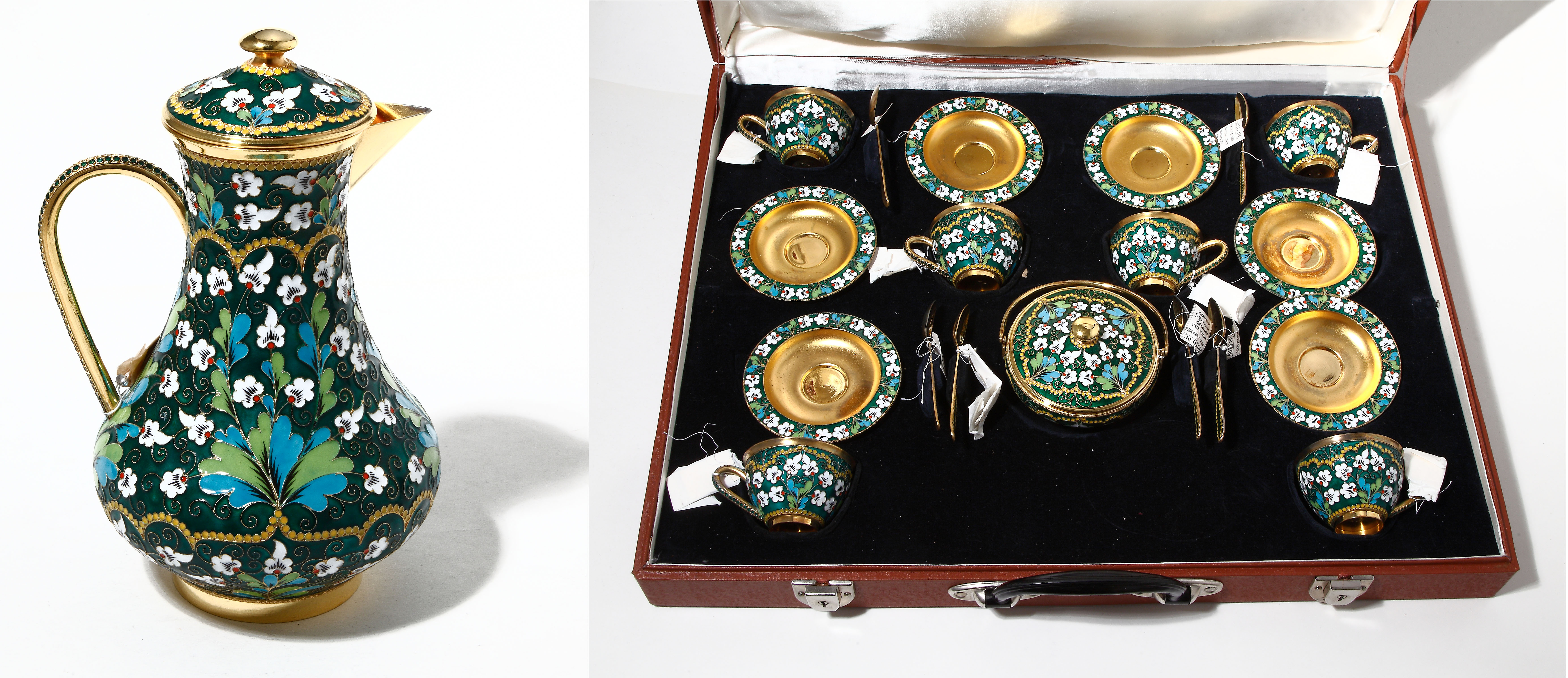 Чайный сервиз. Позолота, филигрань, эмаль.
