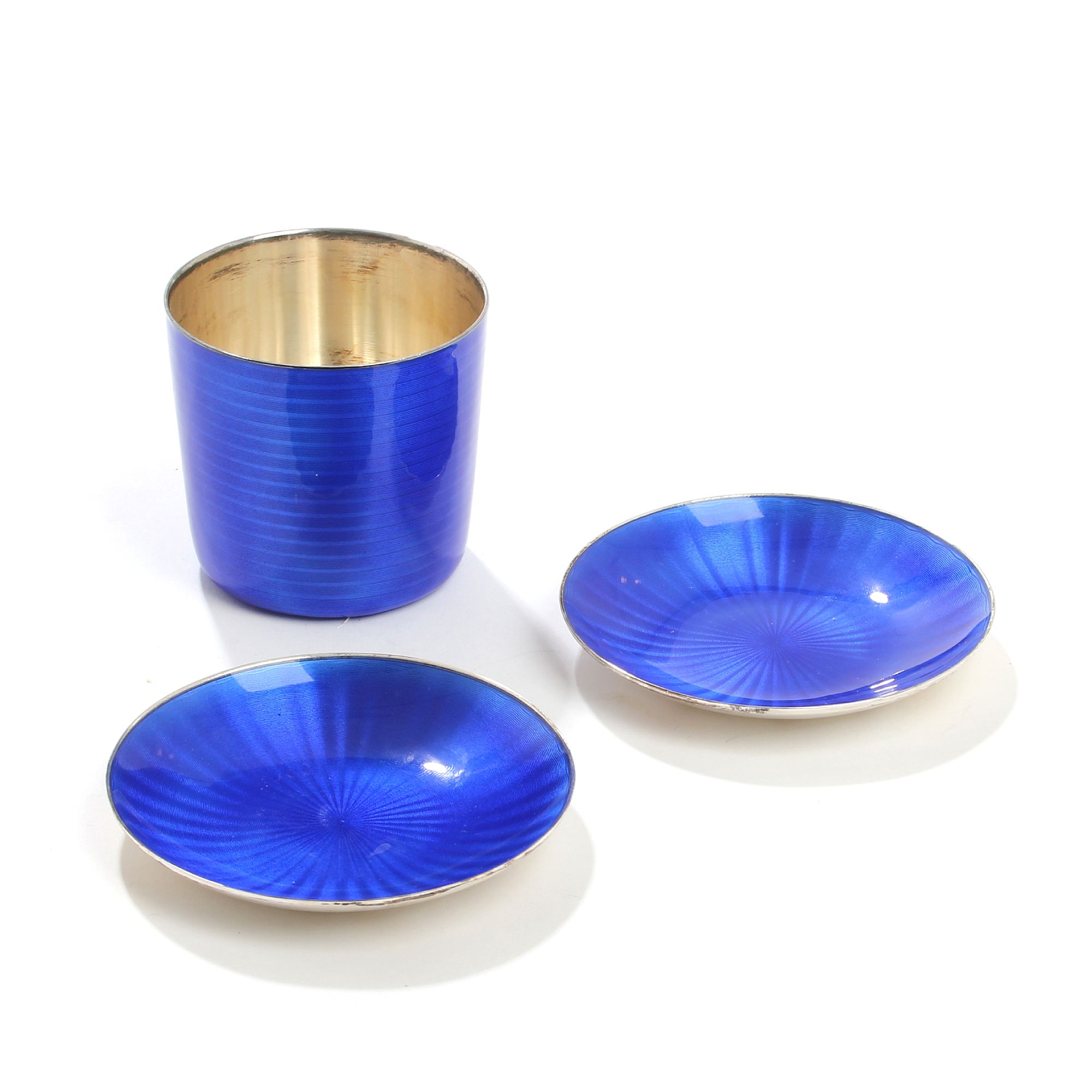 Серебряный стаканчик с двумя блюдечками в эмали