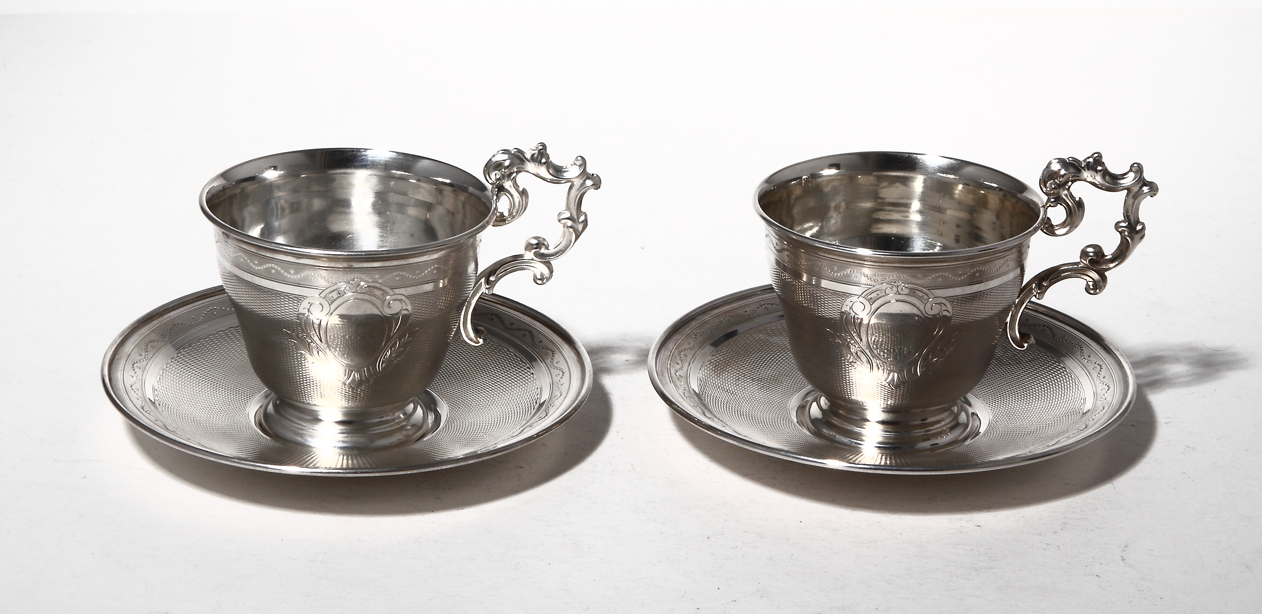 На внутренней поверхности одной чашки имеются следы пайки ручки. При этом чашка