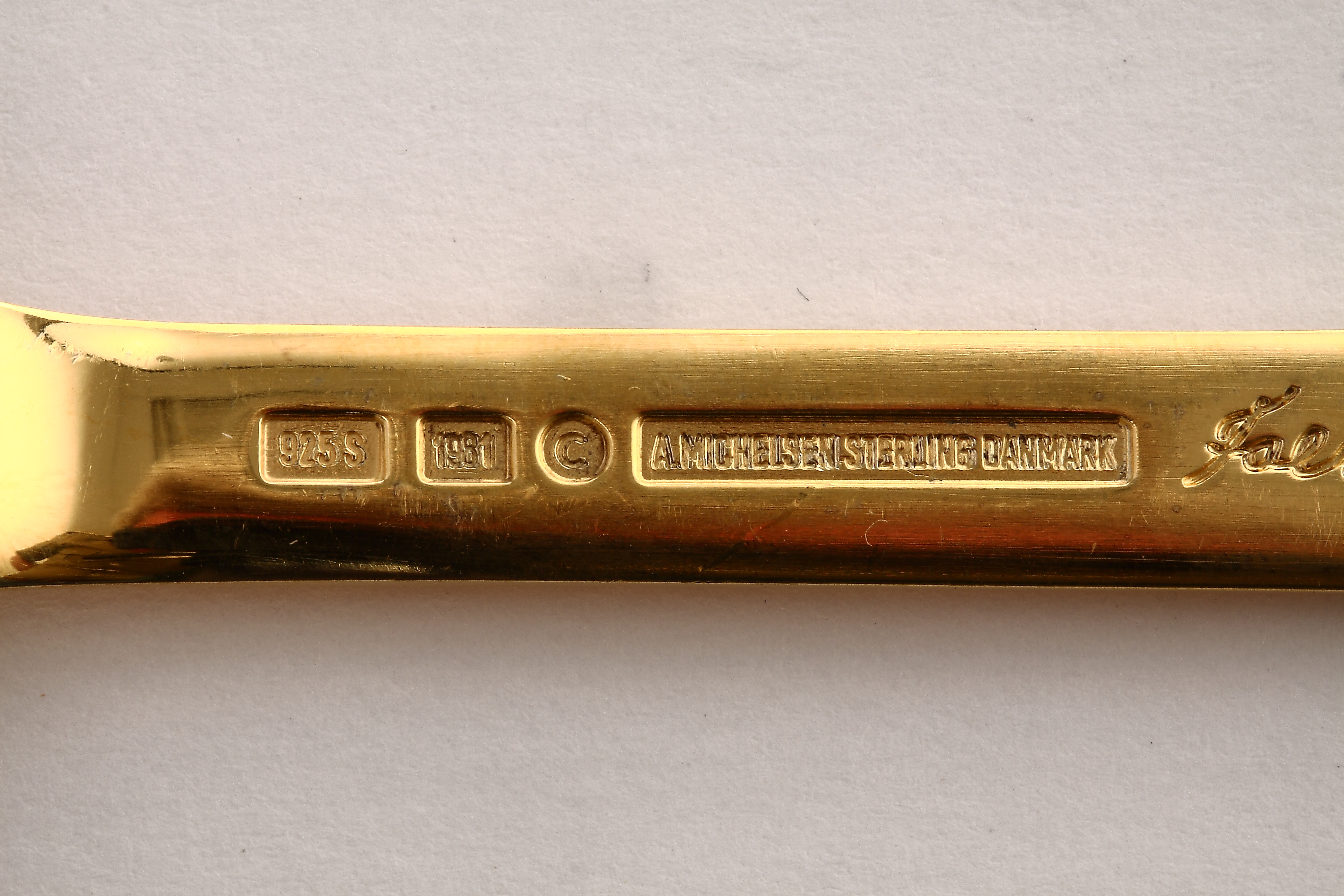 Red Robin" из серии годовых приборов от поставщика датского королевского двора Антона Михельсена (A.Michelsen). Будут хорошим подарком для тех, кто родился в 1981 году. учки полностью позолоченных изделий декорированы цветным рисунком, выполненным в технике перегородчатой эмали. Дания, Копенгаген, 1981 год. Ложка: длина - 16,5см. Вилка: длина - 16,3см. Общий вес - 85 граммов серебра 925 пробы. Без гравировок. Состояние смотрите на фотографиях. Если Вам что-то не видно на фотографиях, напишите, воспользовавшись опцией "Обсудить лот", выложу более подробные фотографии. С 1910 года именитый датский производитель столового серебра A.Michelsen выпускает каждый год так называемую Christmas Spoon, которую традиционно датчане, да и не только, включают в рождественские подарки близким. Авторами дизайна становятся наиболее интересные датские дизайнеры, художники, скульпторы. В данном случае дизайн изделий был разработан Falke Bang. Клеймо дизайнера. На изделиях имеется клеймо «A.MICHELSEN STERLING DANMARK» - клеймо известного датского производителя серебряных изделий, поставщика датского королевского двора. Помимо авторства, данное клеймо удостоверяет, что изделия произведены в Дании из стерлингового серебра (925 проба). Клеймо дизайнера. В описании данного лота представлены лишь краткие сведения о нем. Если Вы действительно заинтересованы в покупке этого лота и не можете найти важной для Вас информации, дополнительных фотографий, размеров, описания клейм, Вы всегда можете запросить эту информацию через форму обсуждения лота - "задать вопрос продавцу". Кликнув по ниже указанным картинкам, Вы сможете рассмотреть лот на более качественных фотографиях, чем это позволяет сделать "Молоток":