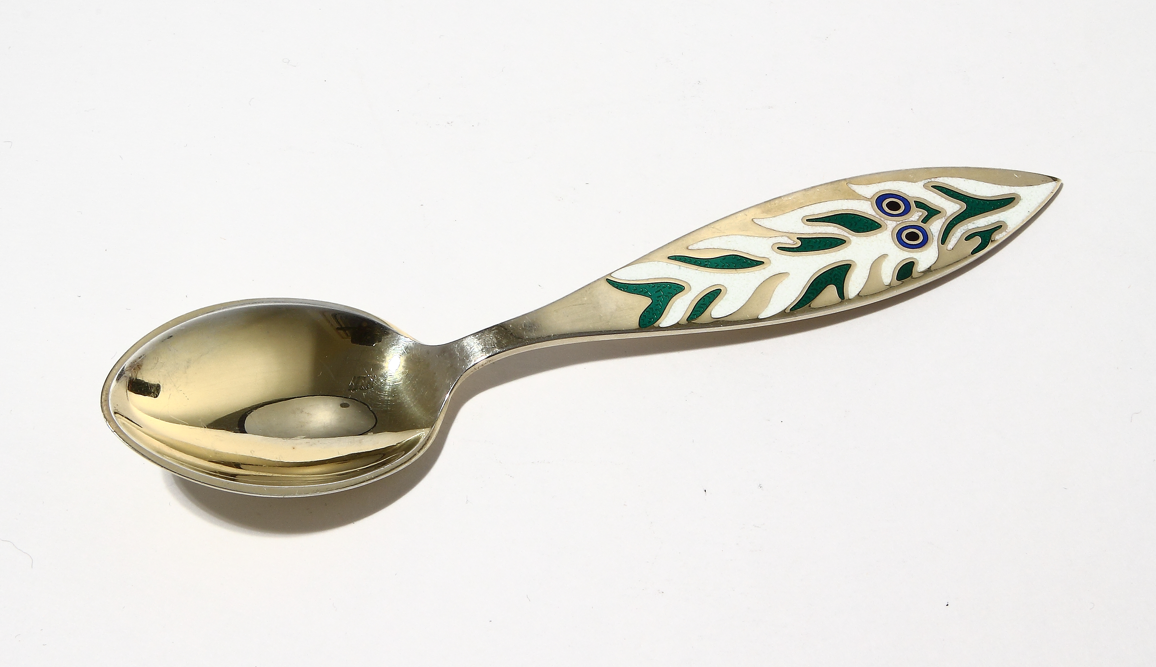 учка позолоченной ложки декорирована цветным рисунком, выполненным в технике перегородчатой