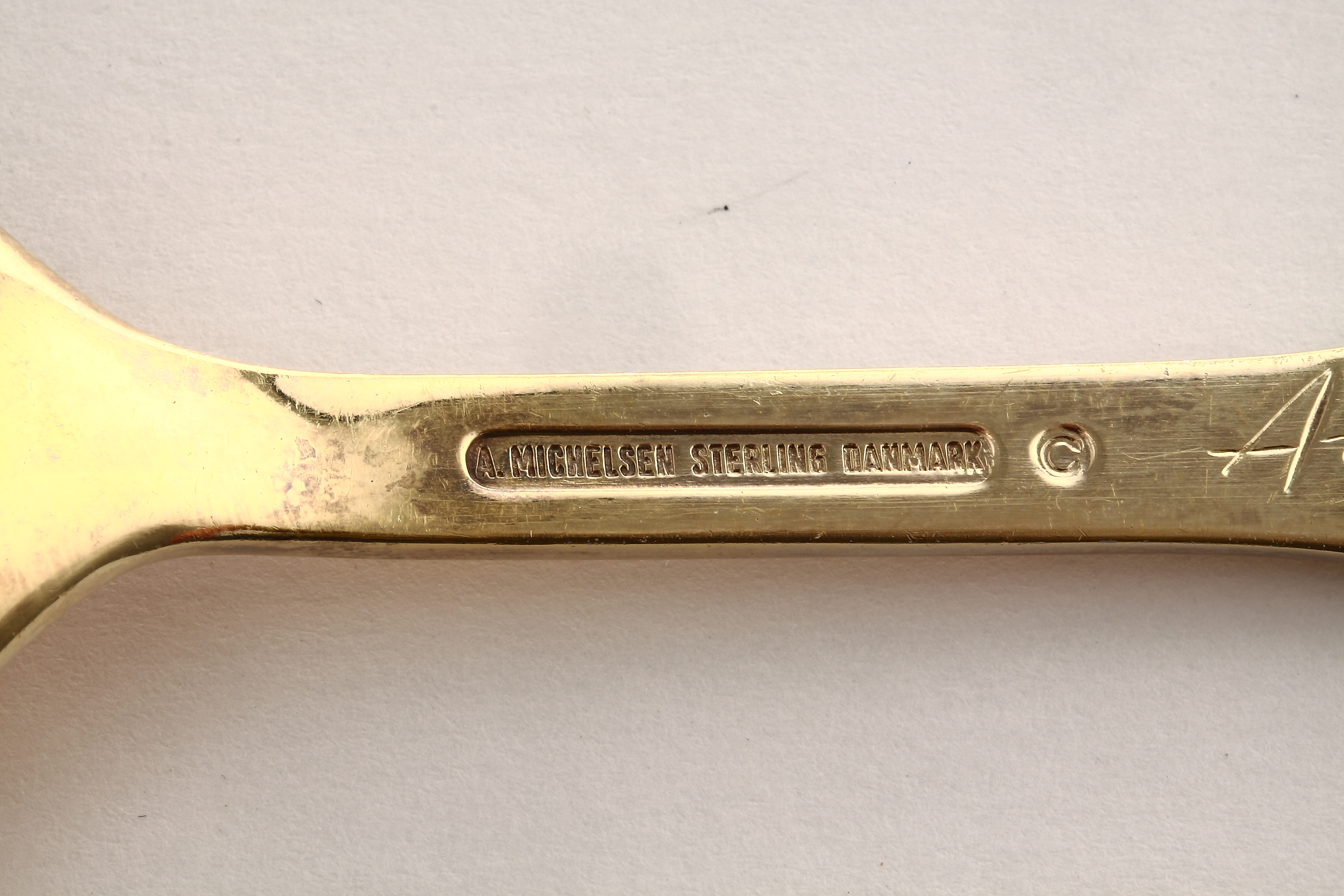 В данном лоте предлагается коллекционная ложка 1969 года "Greenlander" из серии годовых приборов от всемирно известного производителя серебряных изделий - поставщика датского королевского двора Антона Михельсена (A. Michelsen).