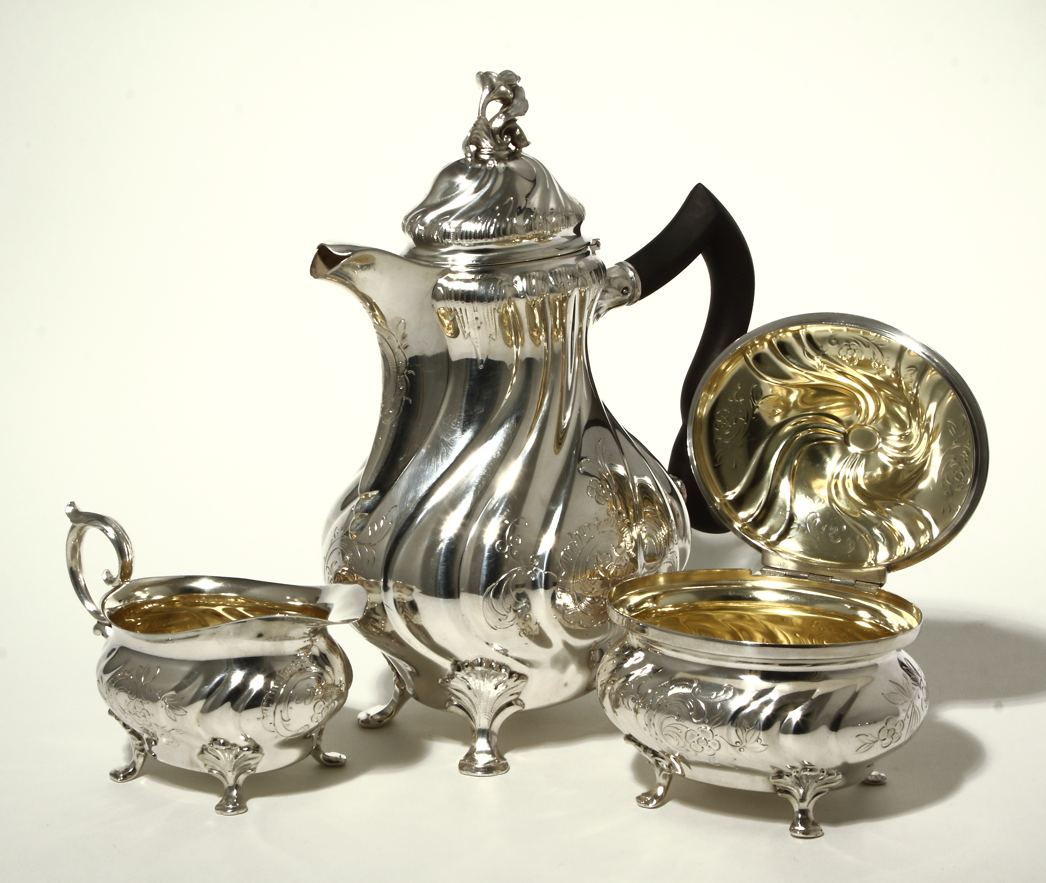 Серебряный кофейный сервиз, 3 предмета. ококо.