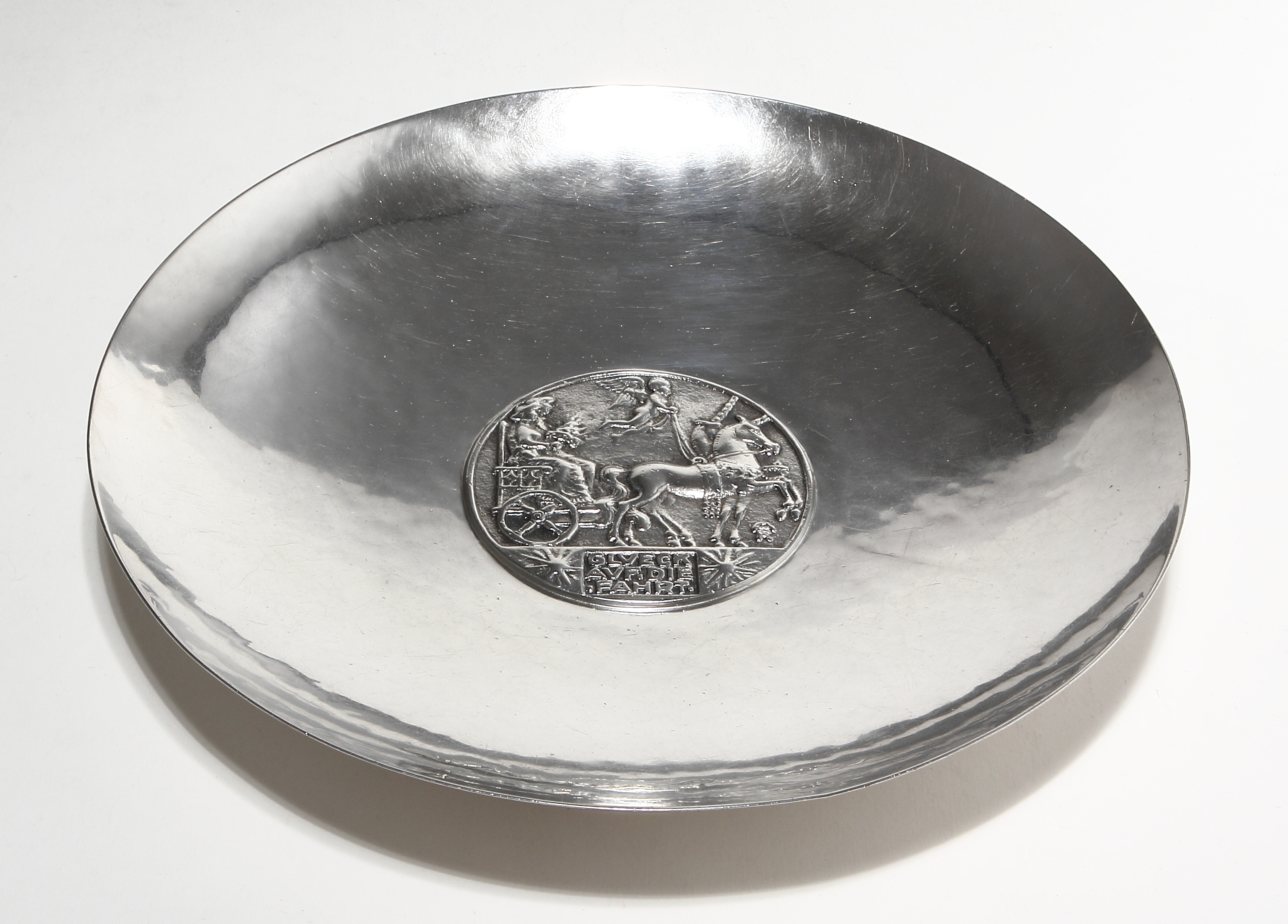 |  |  |  | Германия, 1938 год. Диаметр - 22,5см, высота - 3,4см. Вес - 476 граммов серебра 835 пробы. Без гравировок. Без вмятин, крупных царапин и иных существенных повреждений. Состояние смотрите на фотографиях. Если Вам что-то не видно на фотографиях, напишите, воспользовавшись опцией "Обсудить лот", выложу более подробные фотографии. Клеймо мастерской. Клеймо, удостоверяющее ручную проработку изделия. Пробирные клейма Германии: «Полумесяц и корона» - клеймо, удостоверяющее, что изделие было изготовлено в Германии из серебра. «835» - цифровое клеймо, удостоверяющее 835 пробу серебра. В описании данного лота представлены лишь краткие сведения о нем. Если Вы действительно заинтересованы в покупке этого лота и не можете найти важной для Вас информации, дополнительных фотографий, размеров, описания клейм, Вы всегда можете запросить эту информацию через форму обсуждения лота - "задать вопрос продавцу".