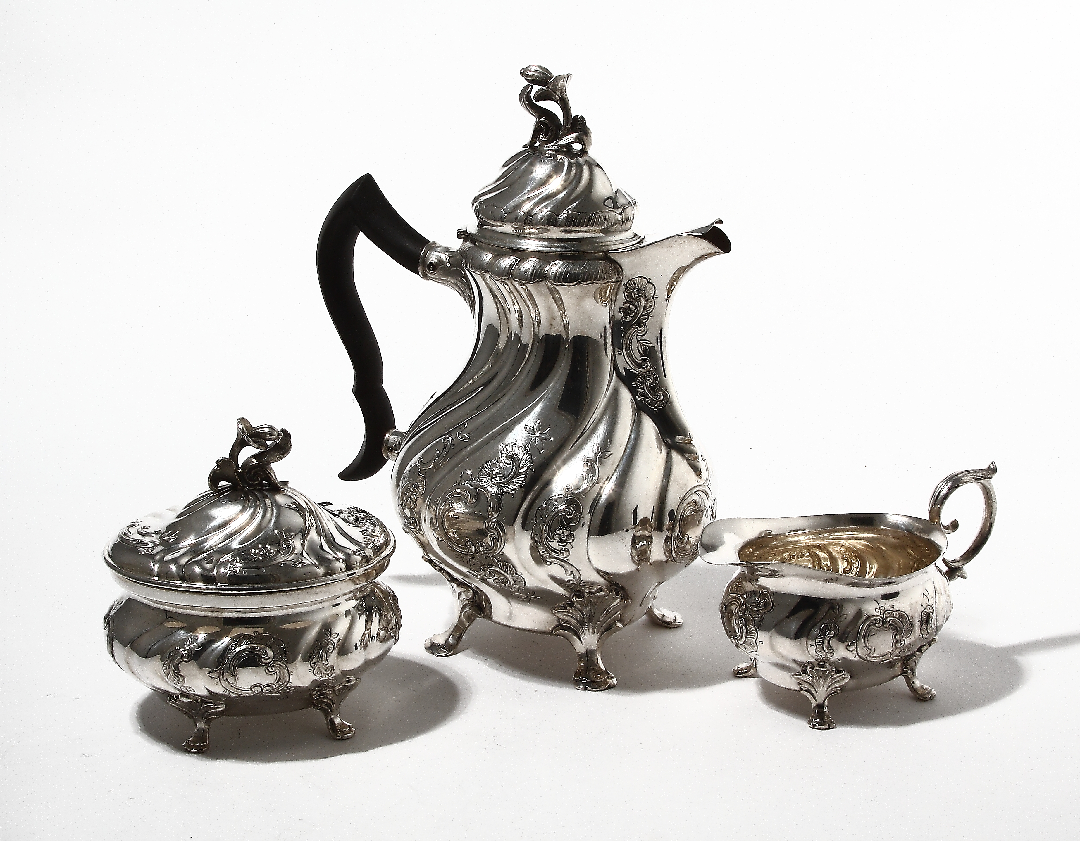 Серебряный кофейный сервиз, 3 предмета. ококо.