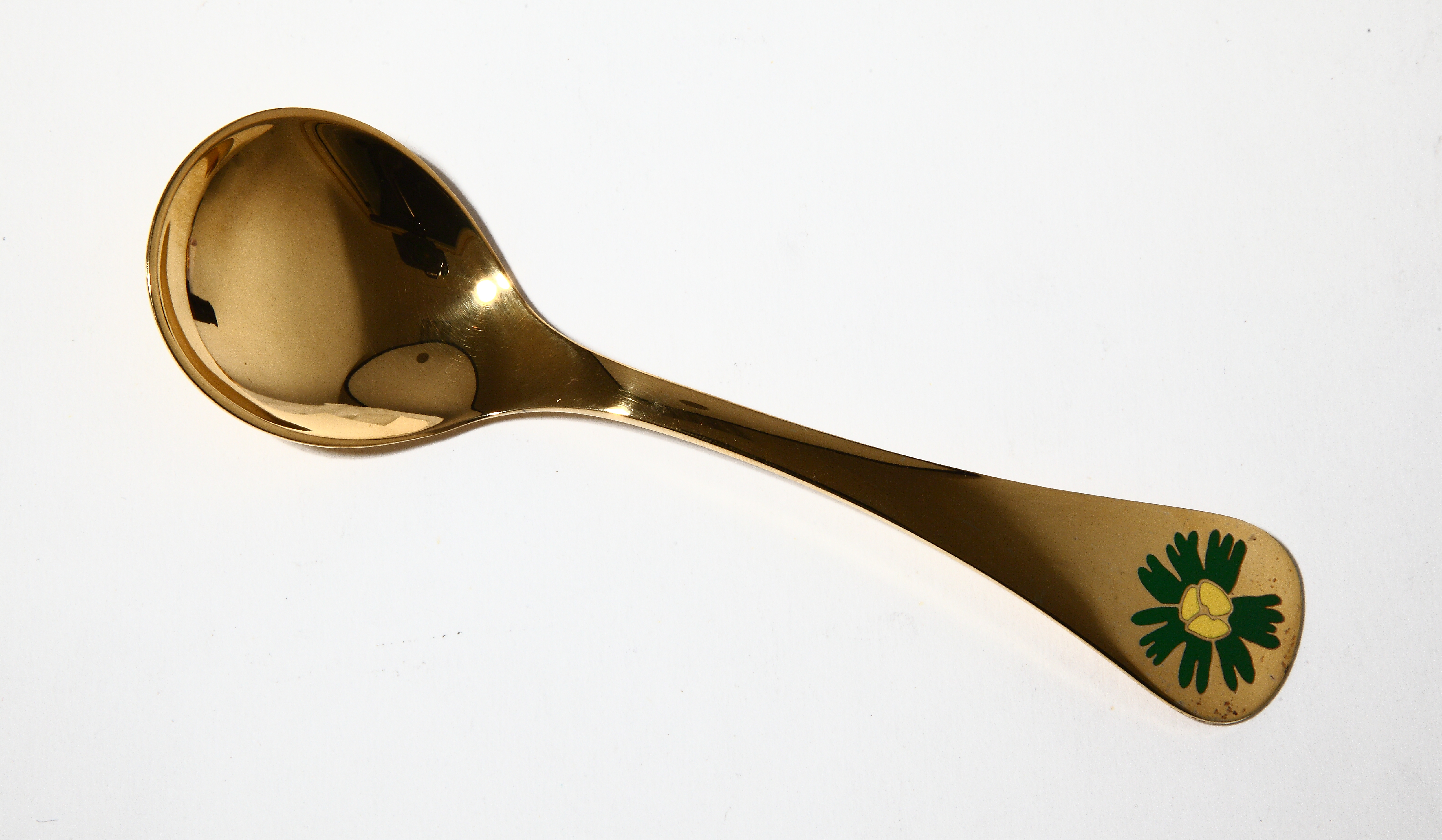 Полностью позолоченная ложка имеет приятную обтекаемую форму.