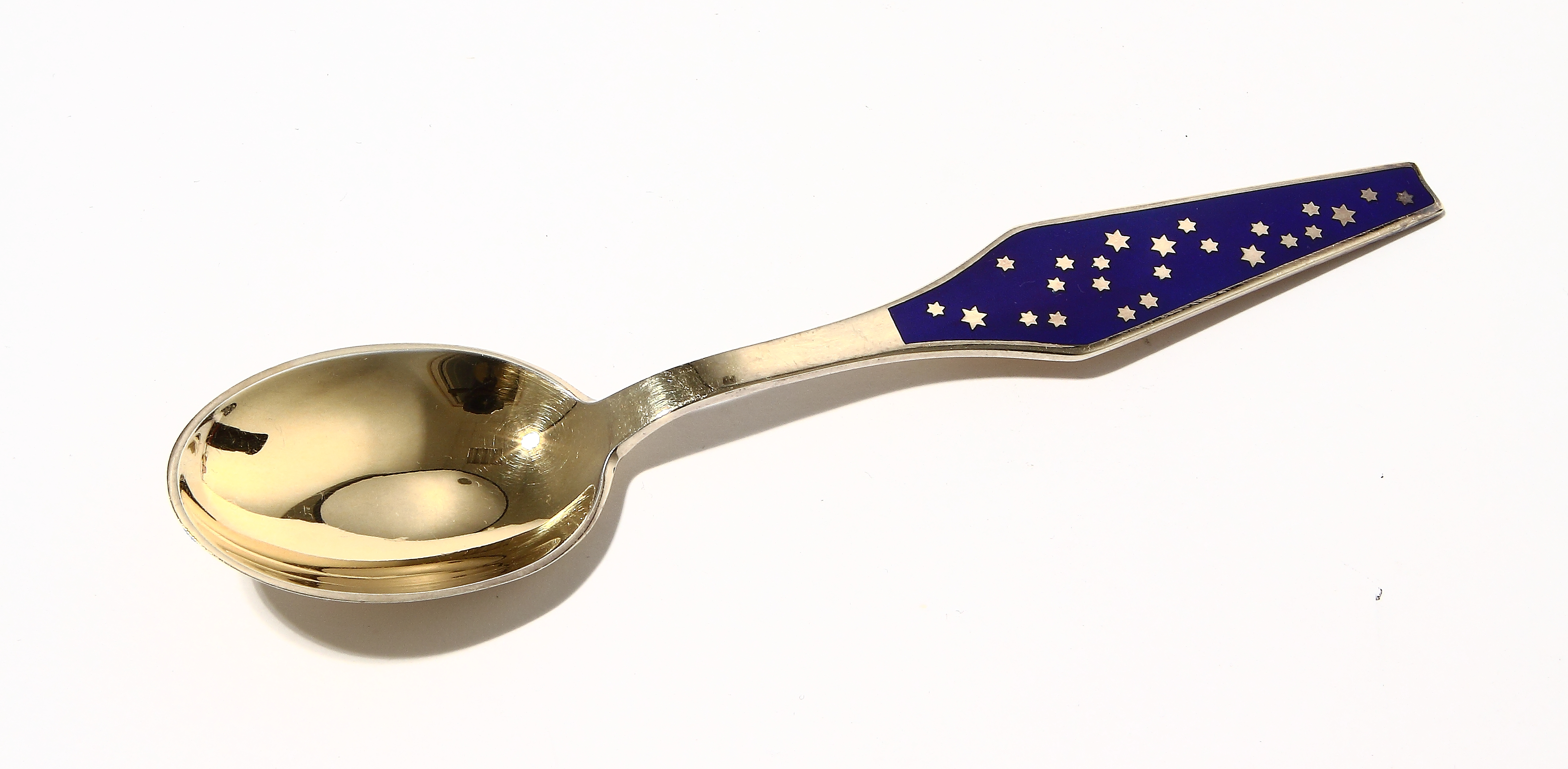 Будет великолепным подарком для тех, кто родился в 1970 году. учка позолоченной ложки декорирована цветным рисунком, выполненным в технике перегородчатой эмали. На обратной стороне ручки отмечен 1970 год. Данное изделие выпускалось лимитированной серией в течение года, затем производственные формы уничтожались. Дания, г.Копенгаген, 1970 год. Длина - 16,5см. Вес - 43 грамма серебра 925 пробы.