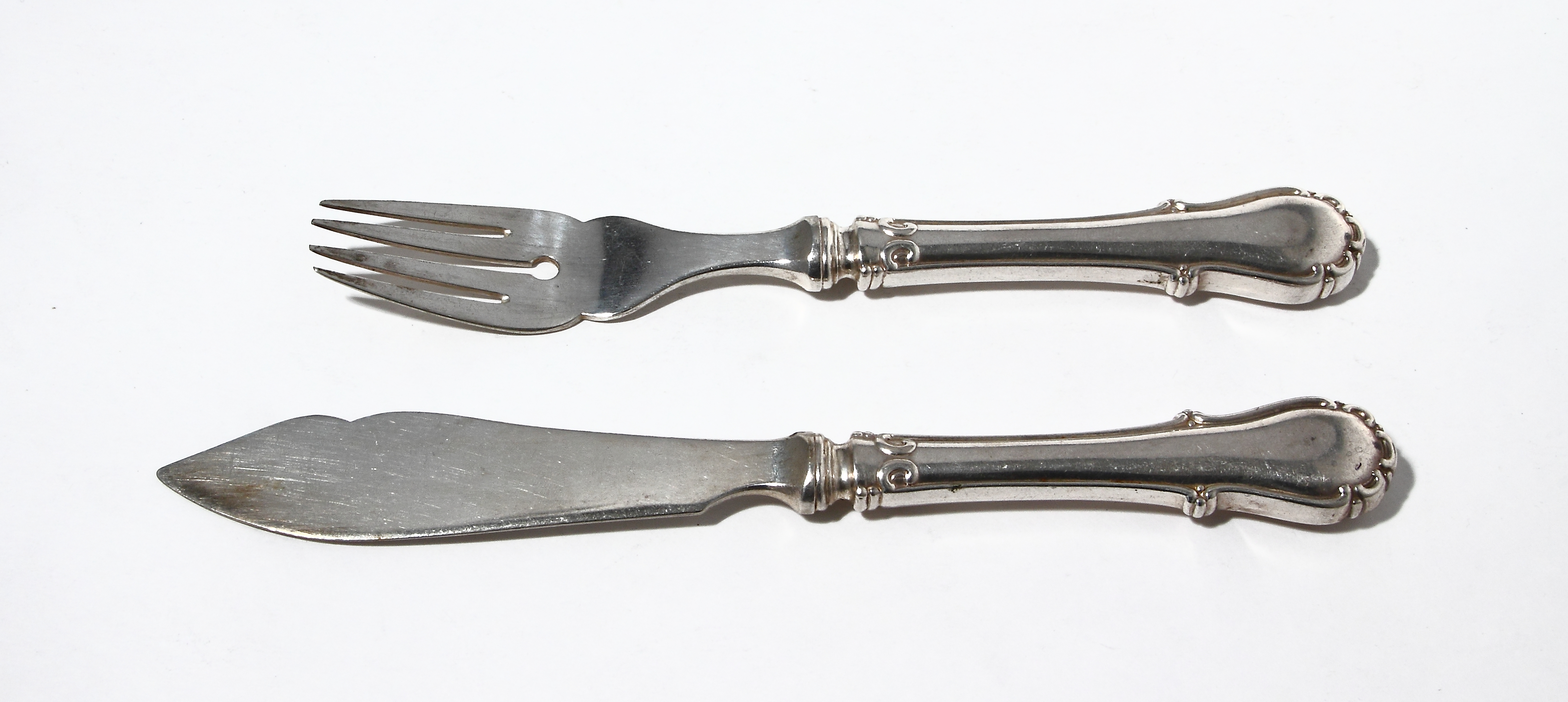 Полностью серебряные рыбные вилка и нож.Дания, 1939 год.