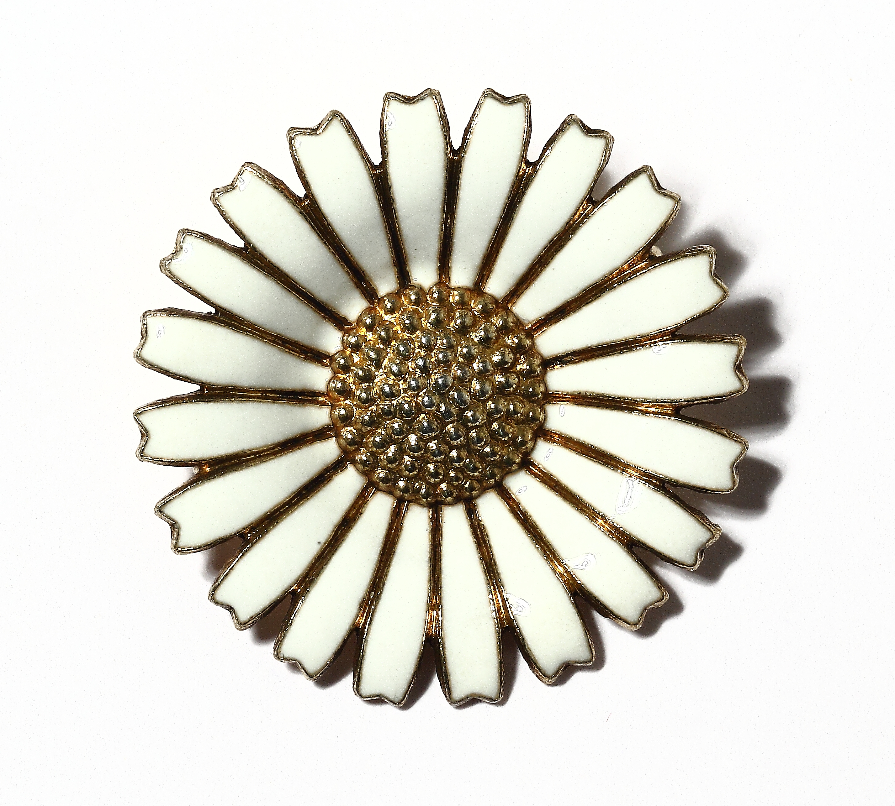 Серебряная брошка с белой эмалью - Маргаритка