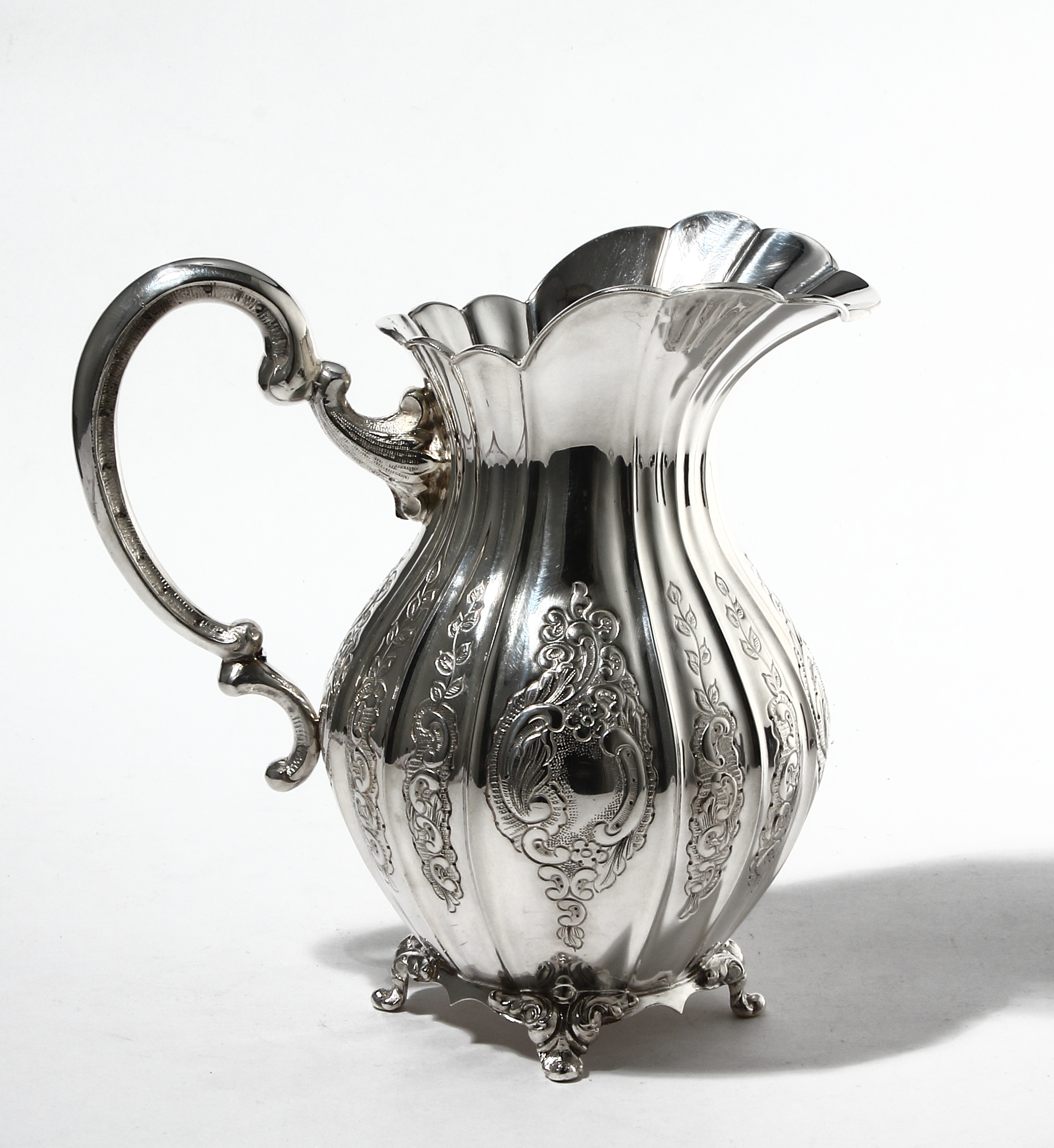 Красивый серебряный кувшин, выполненный в стиле рококо.