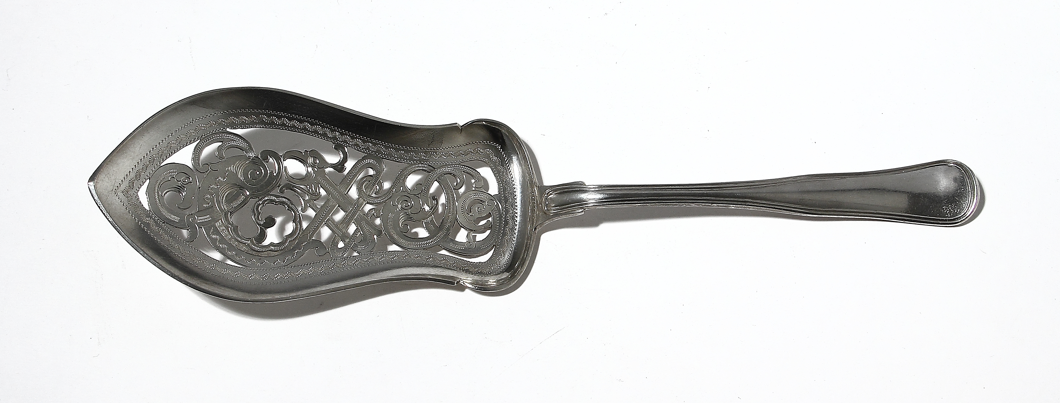 Старинная сервировочная лопатка с прорезной рабочей частью.