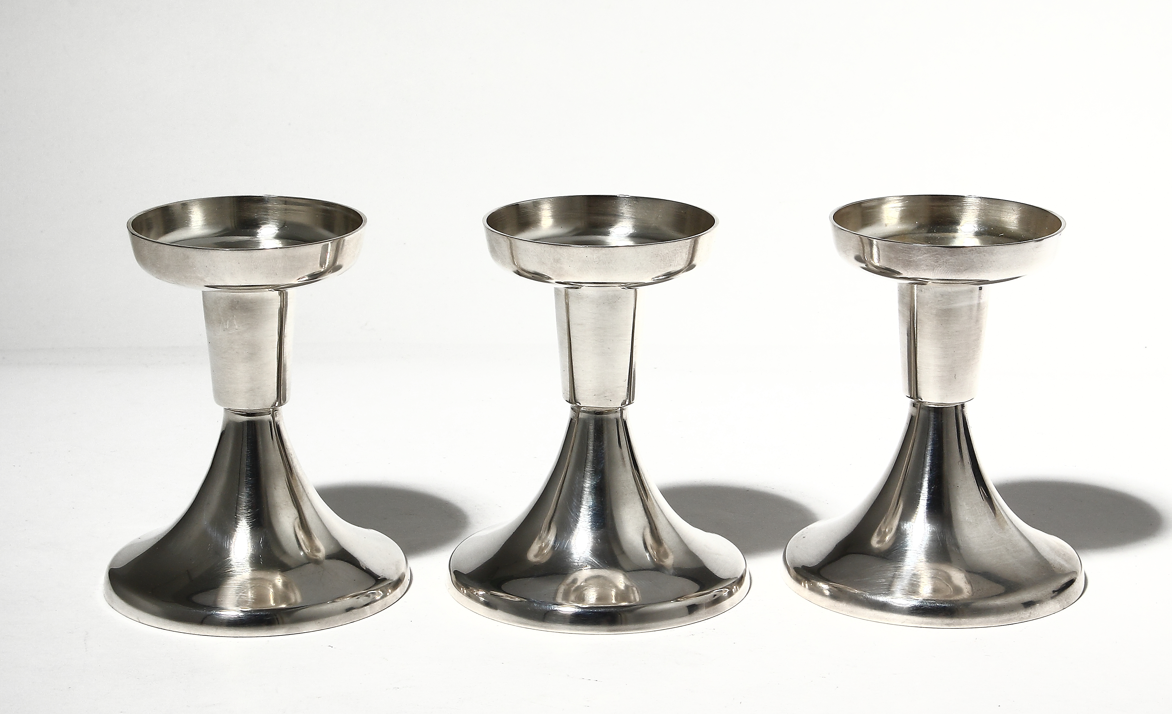 Три серебряных подсвечника, выполненных в стиле арт деко.